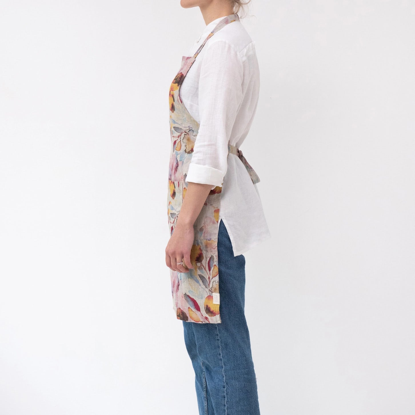 Linen Tales Pinafore Apron / Orange Flow Natural