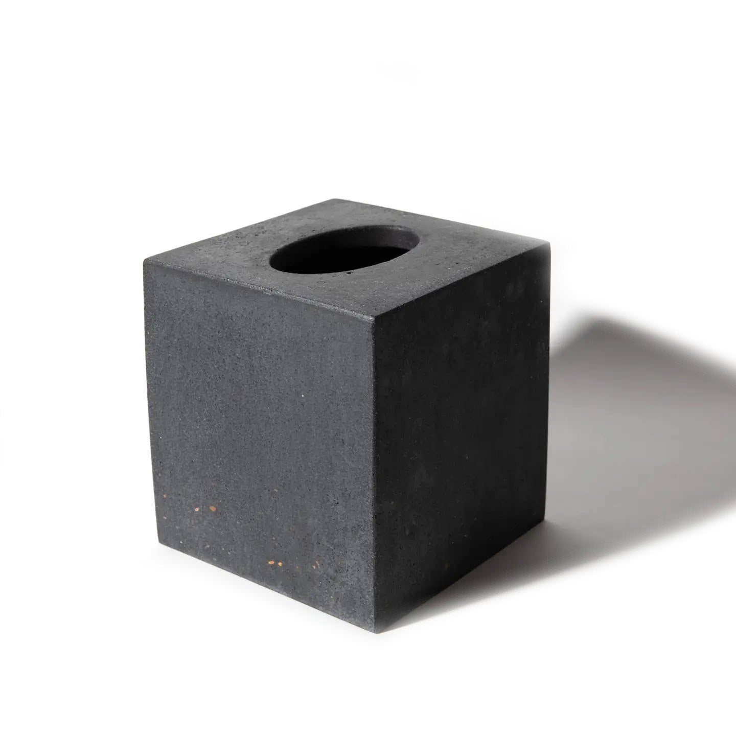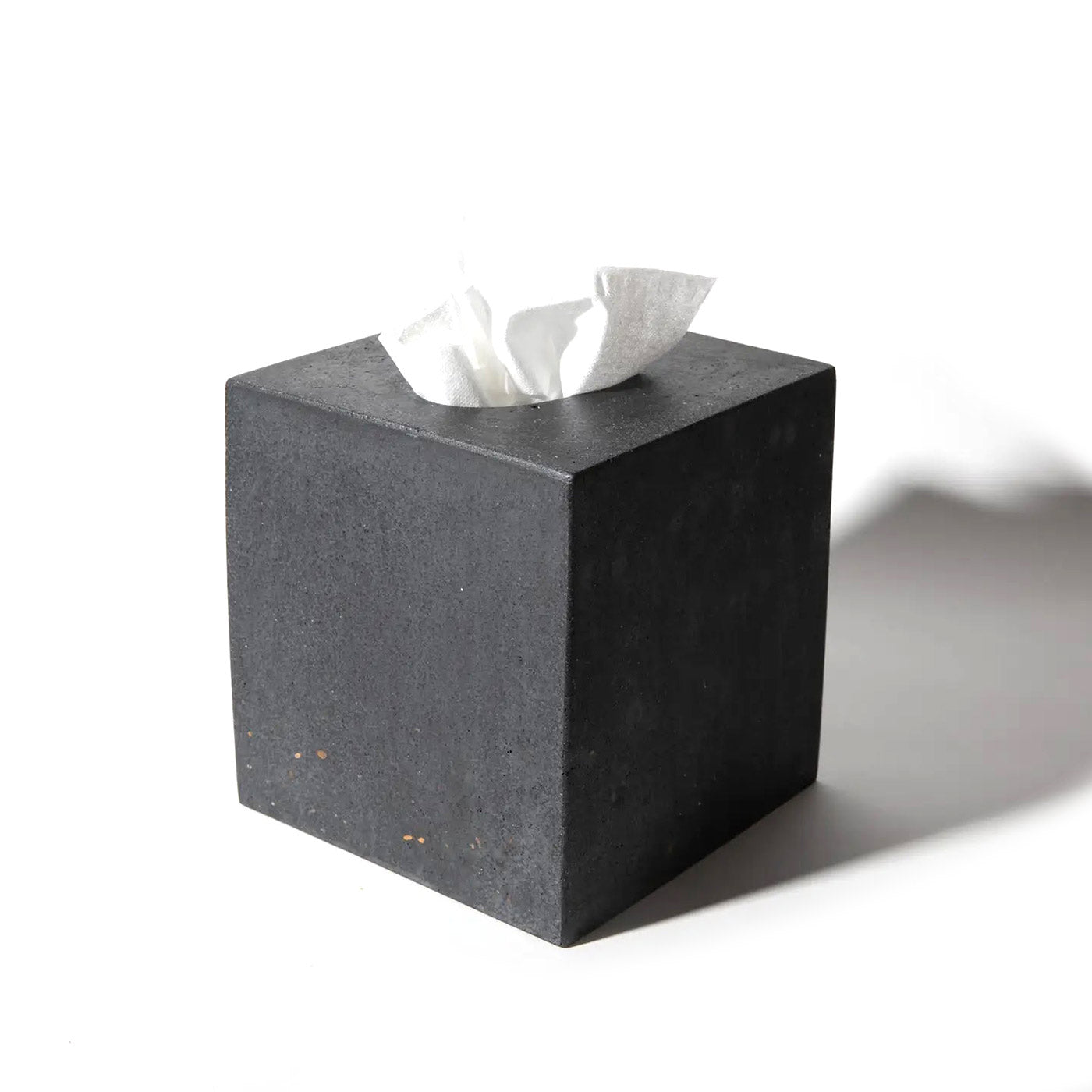 Sleek concrete holder designed to fit standard vertical tissue boxes. Features a modern black terrazzo finish that complements any room's décor while keeping tissues neatly contained and easily accessible.