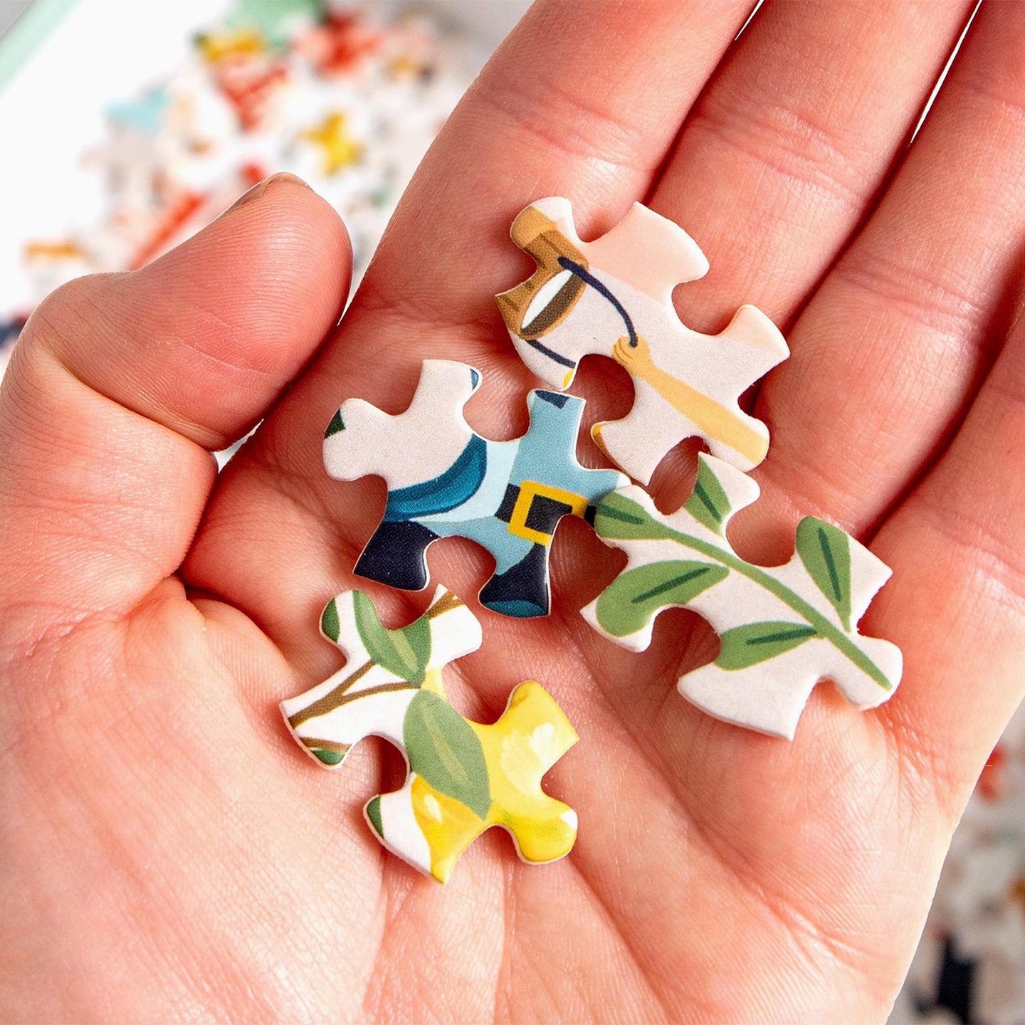 This hand-painted puzzle captures the charm of the classic holiday song, featuring scenes representing each of the twelve days. From partridges in pear trees to lords a-leaping, French hens to ladies dancing, and golden rings to pipers piping, immerse yourself in the joyous spirit of the season.
