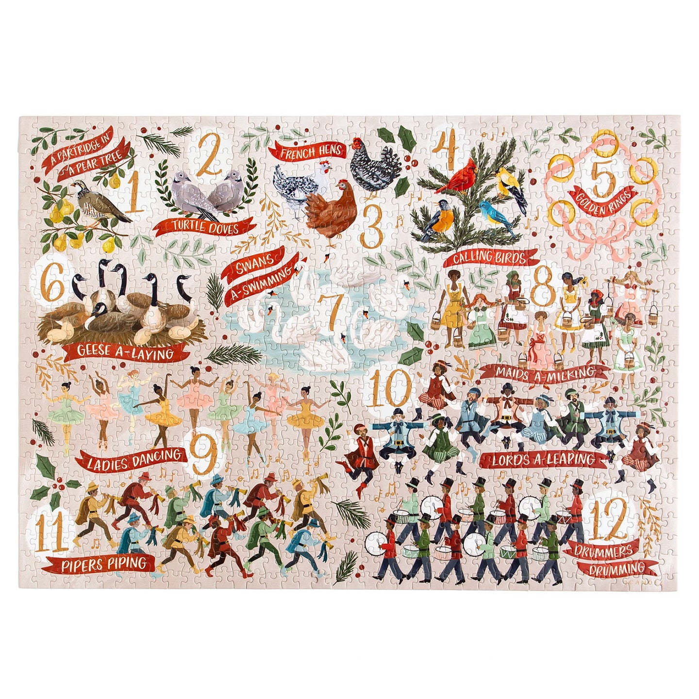 Embark on a festive journey with 1canoe2's 12 Days of Christmas 1,000 Piece Jigsaw Puzzle!