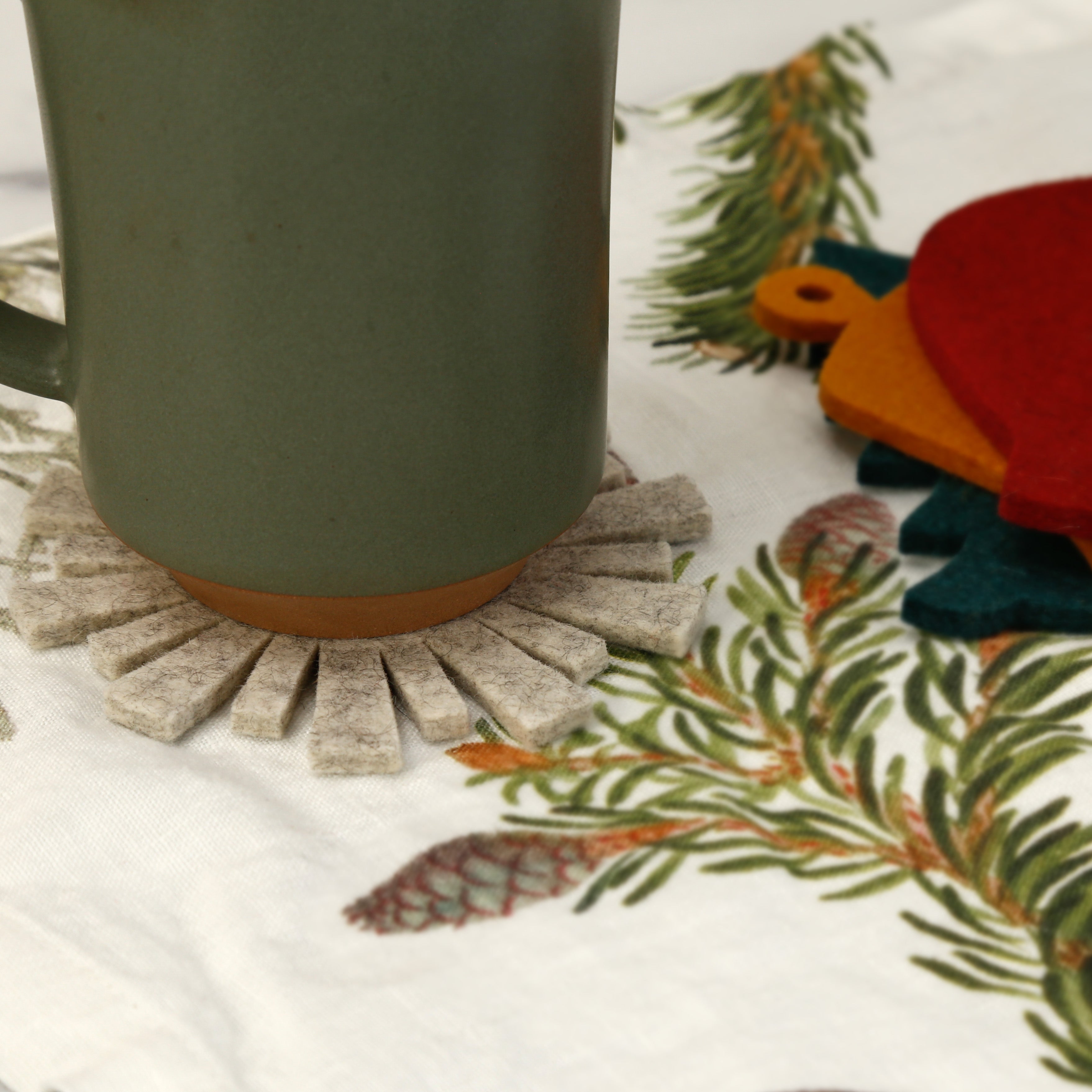 Set includes 4 hand-cut heavy-duty, 5mm wool felt coasters