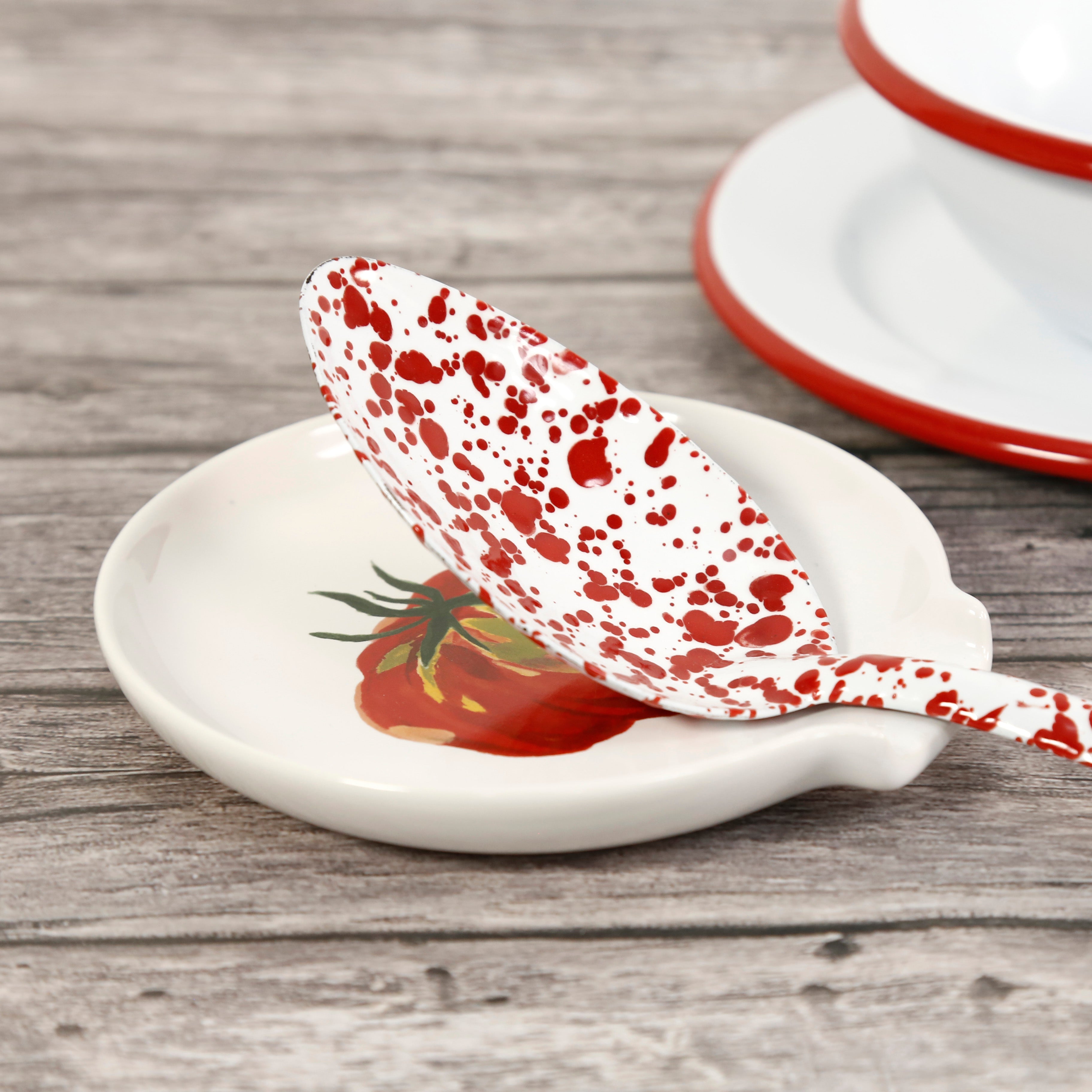 This delightful ceramic stoneware spoon rest is a welcome addition to any kitchen. A motif adds character, while a divot allows spoons to rest comfortably.