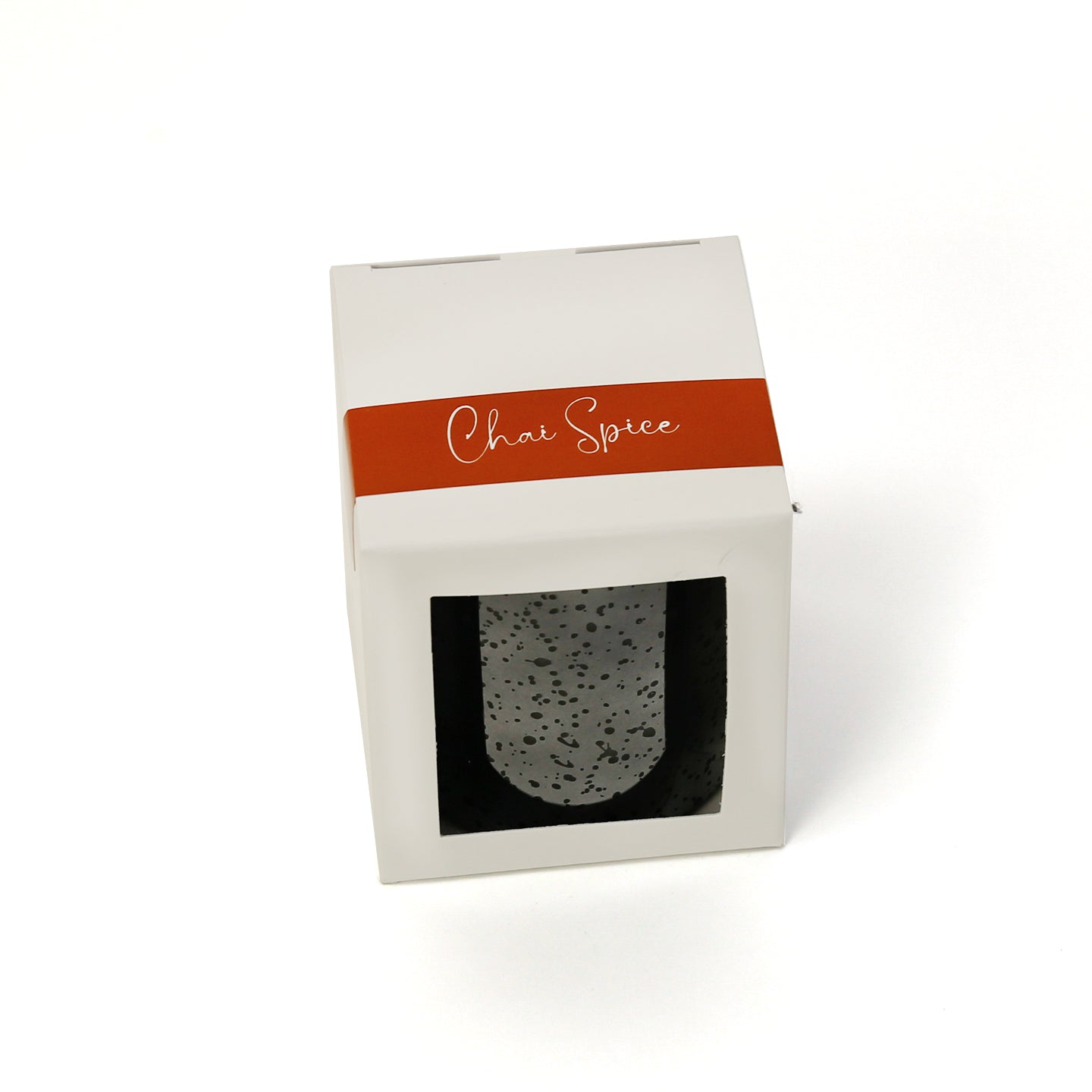 Handmade soy candle made with essential oils of cinnamon, clove, cardamom and vanilla for a clean burning candle.