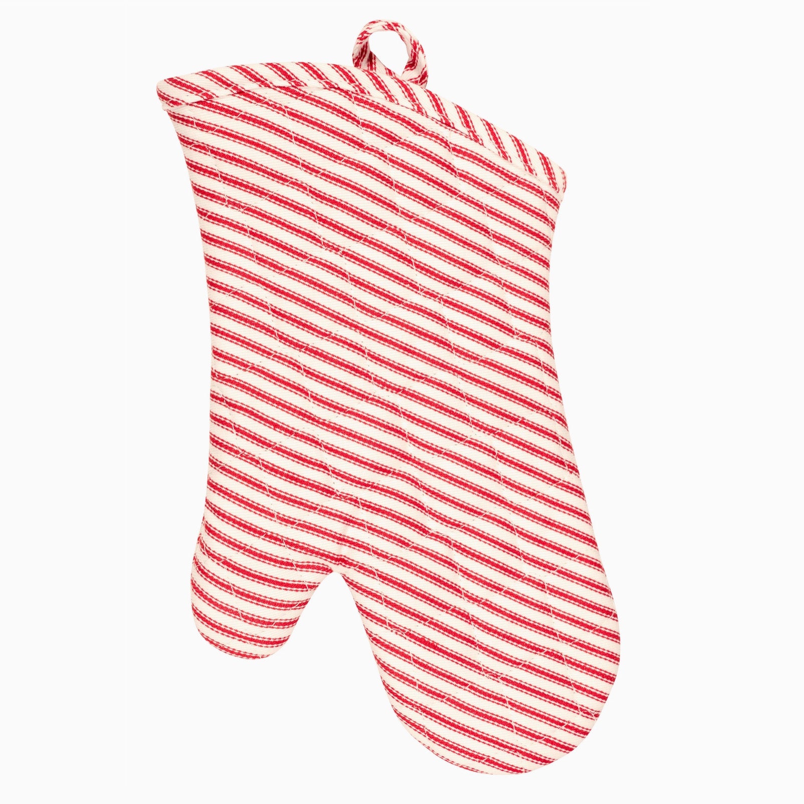 Terry Lined Cotton Oven Mitt / Metro Stripe Cherry