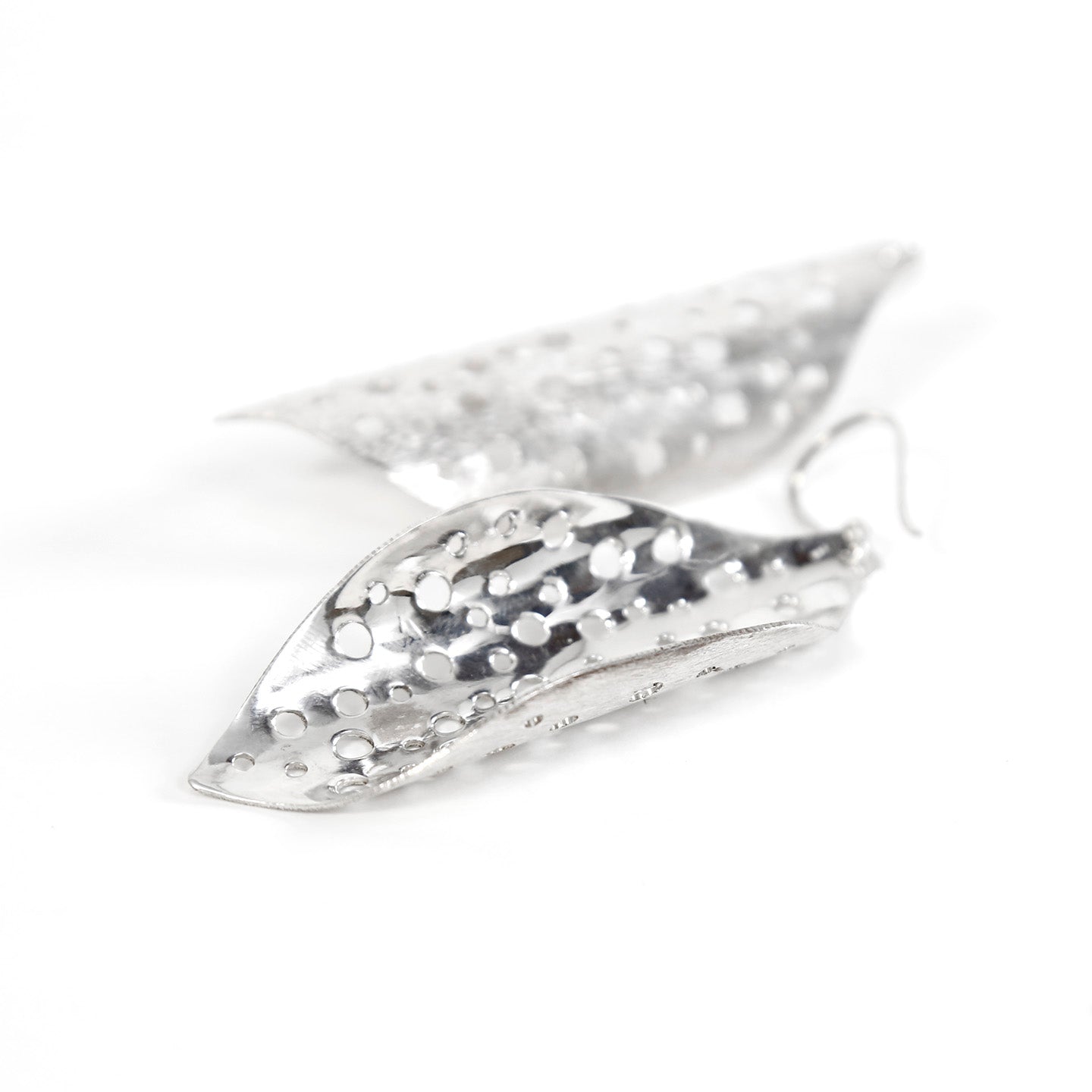 Sterling silver earrings featuring a honeycomb pattern with a curved shape and open cut-out details.