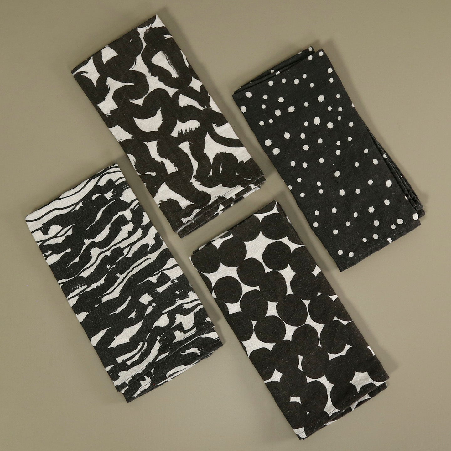 Leila Simon Hayes 4pc Napkin Set / Black & White Mix