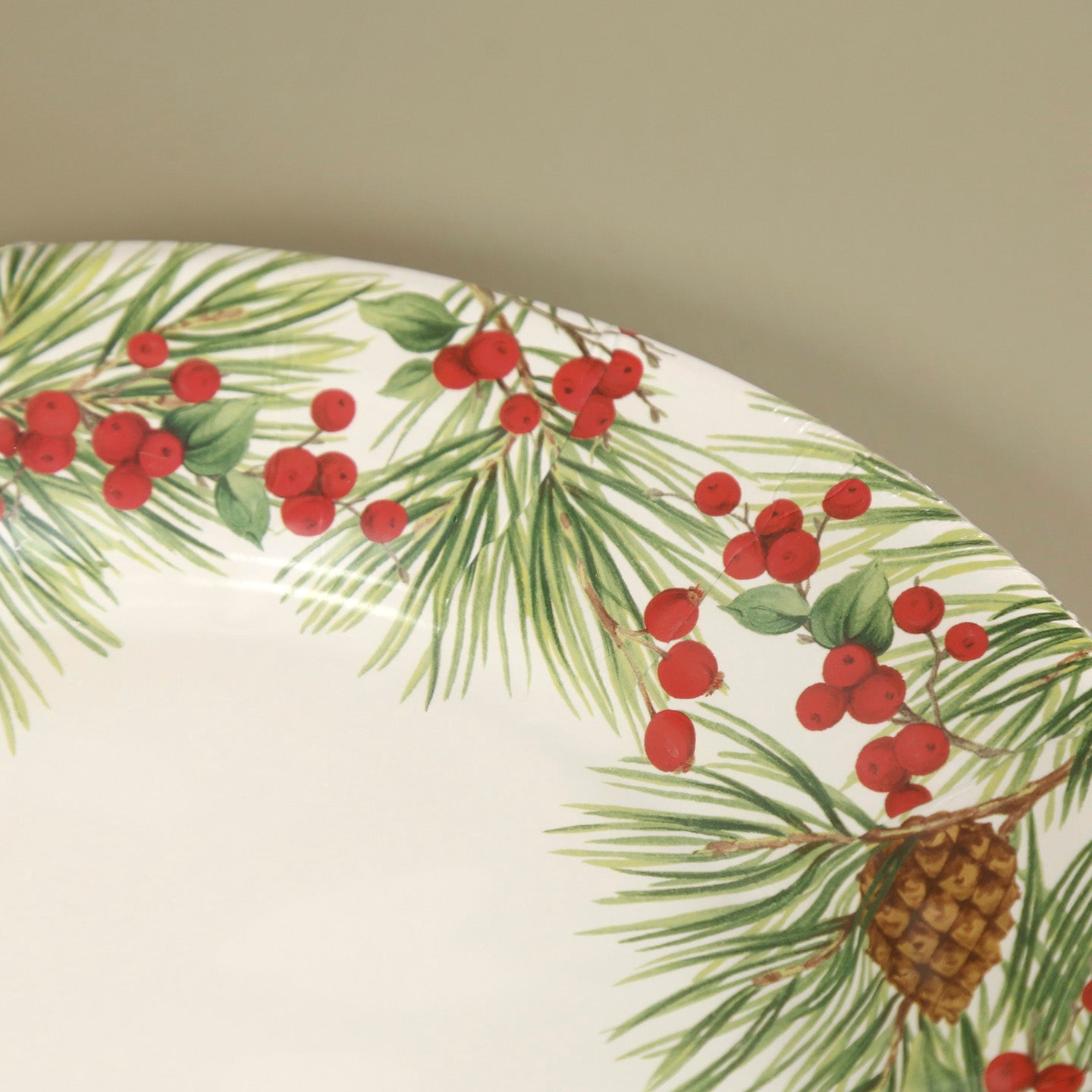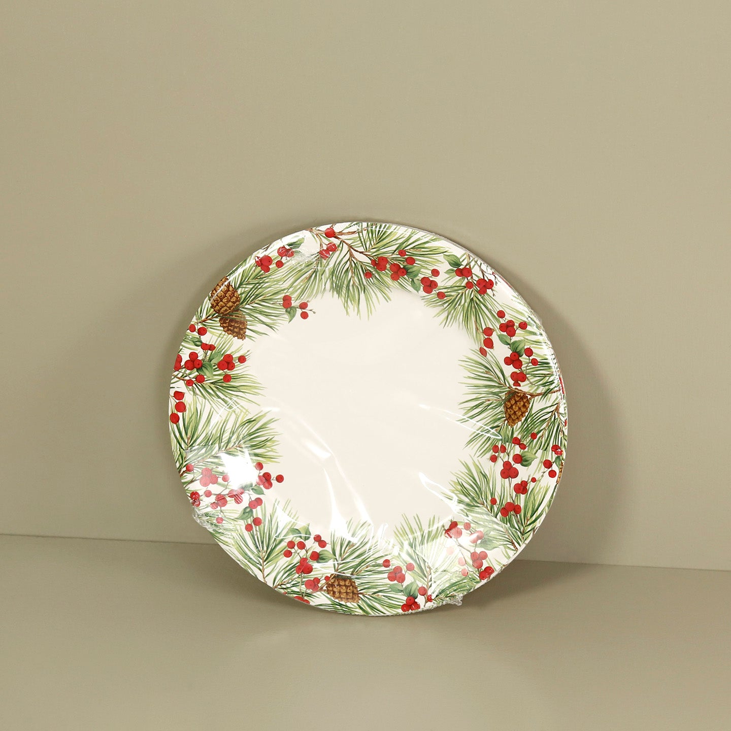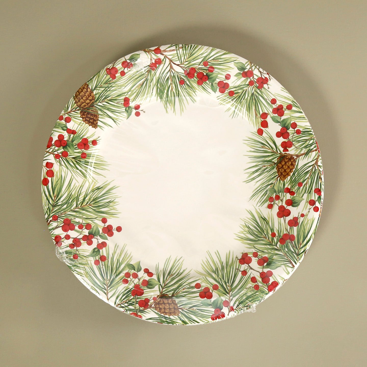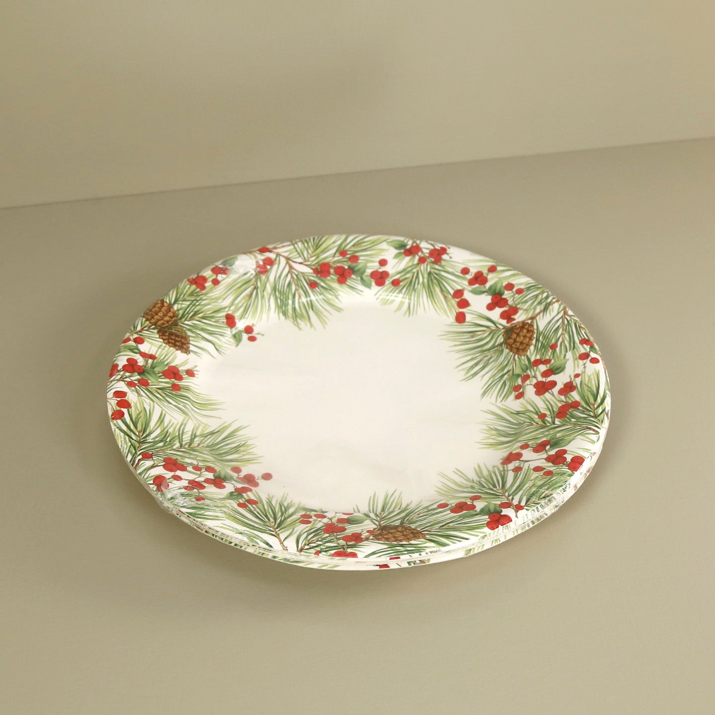 Caspari Paper Dinner Plates / Evergreen And Berries