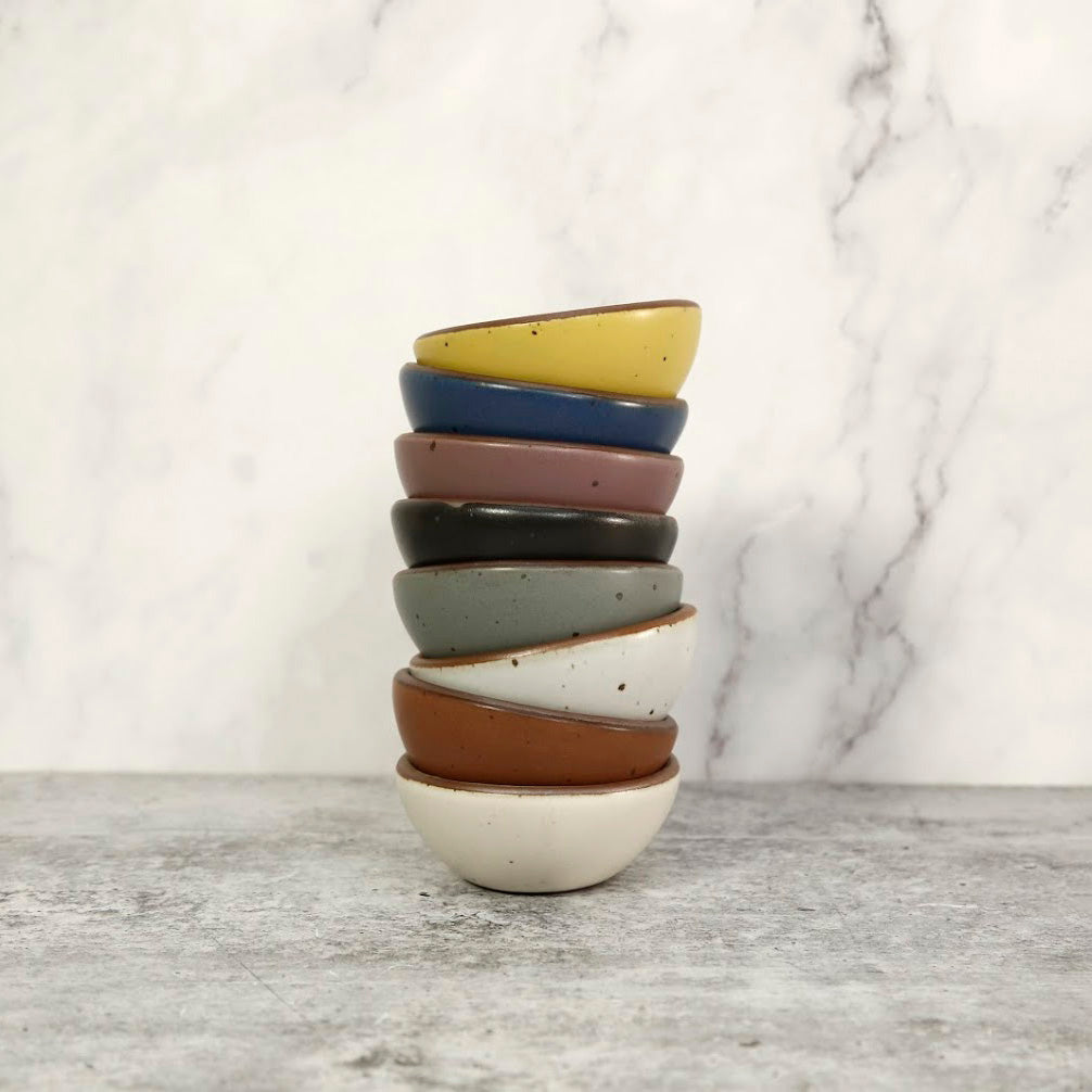 You'll find dozens of purposes for this small wonder of a bowl. Run a line of them holding votive candles across your mantle, set the table with personal-sized sauce bowls, keep sea salt close at hand. Buy a small stack of these little bowls and see all the places they will go! 100% lead free, made from regional materials.