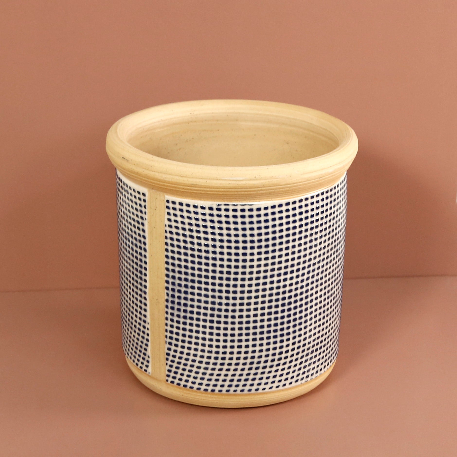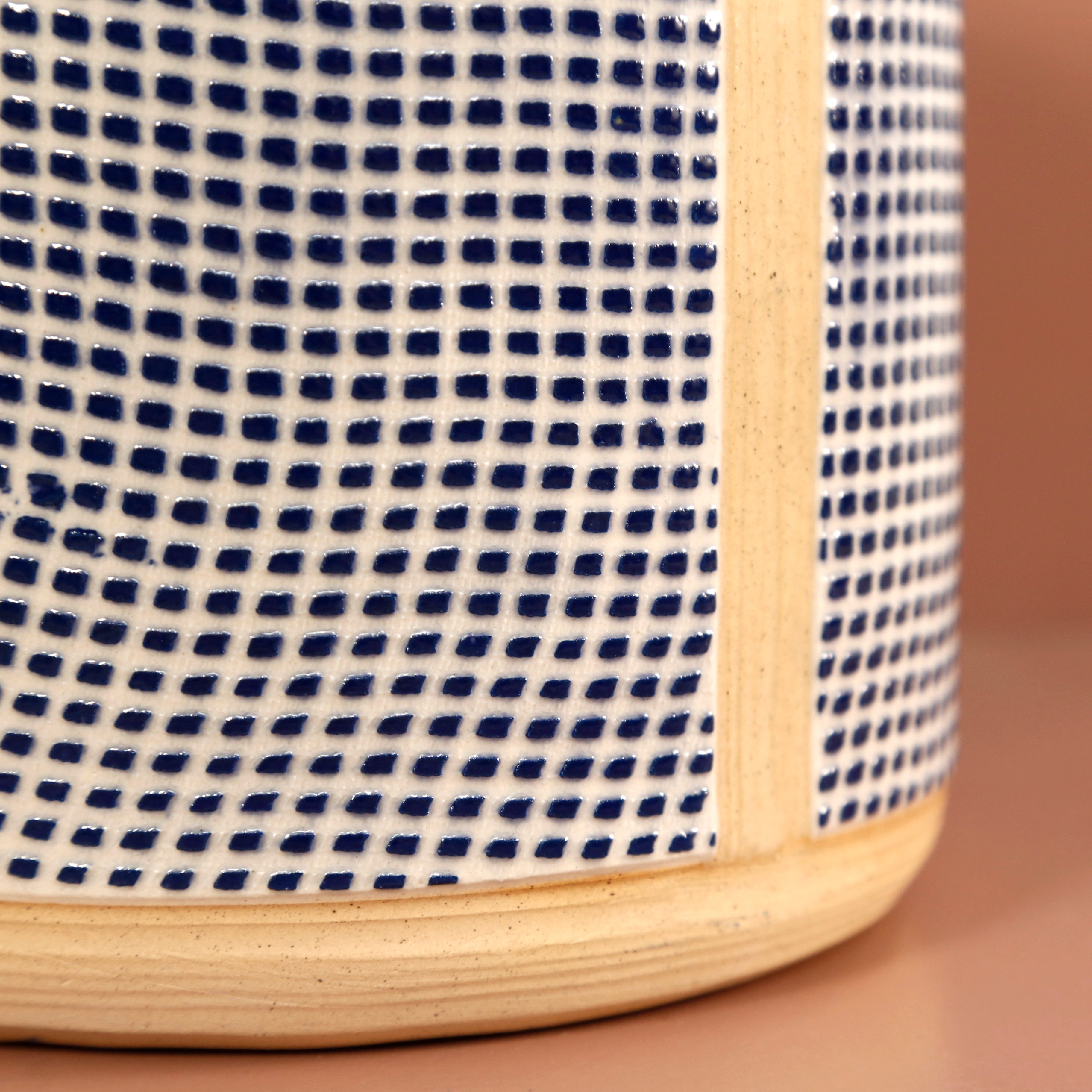 Handmade ceramic wine chiller, made using a unique process of glazing over lace and materials to create gorgeous designs and texture. Each piece is signed and dated on the bottom.