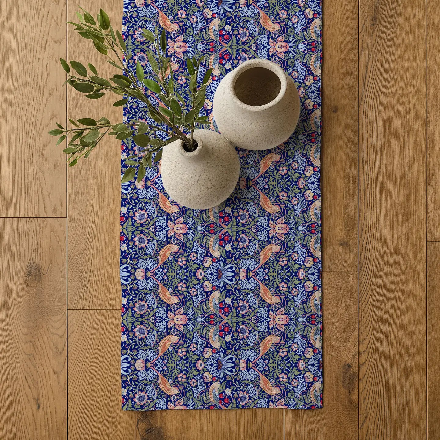 William Morris Linen Table Runners / Strawberry Thief Blue