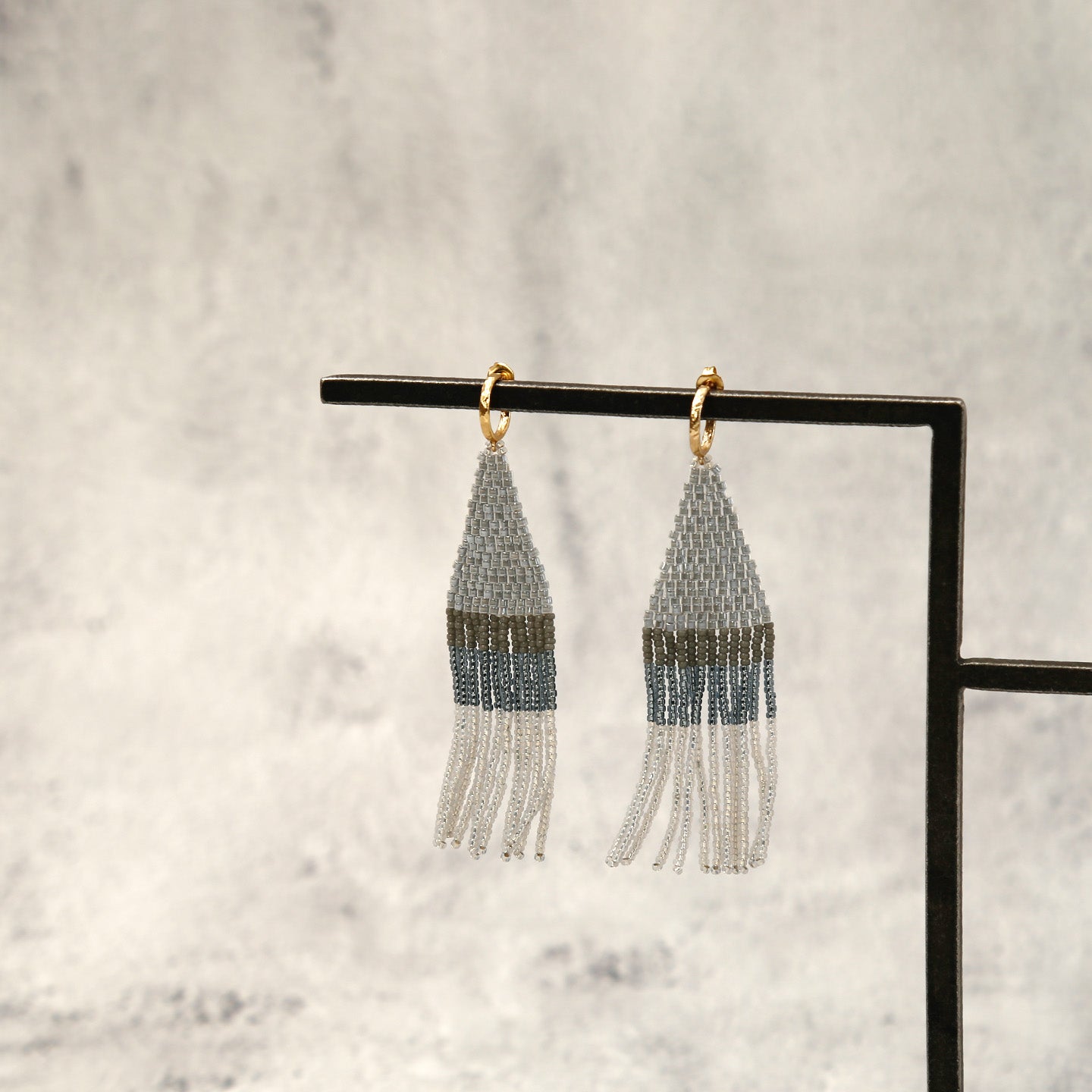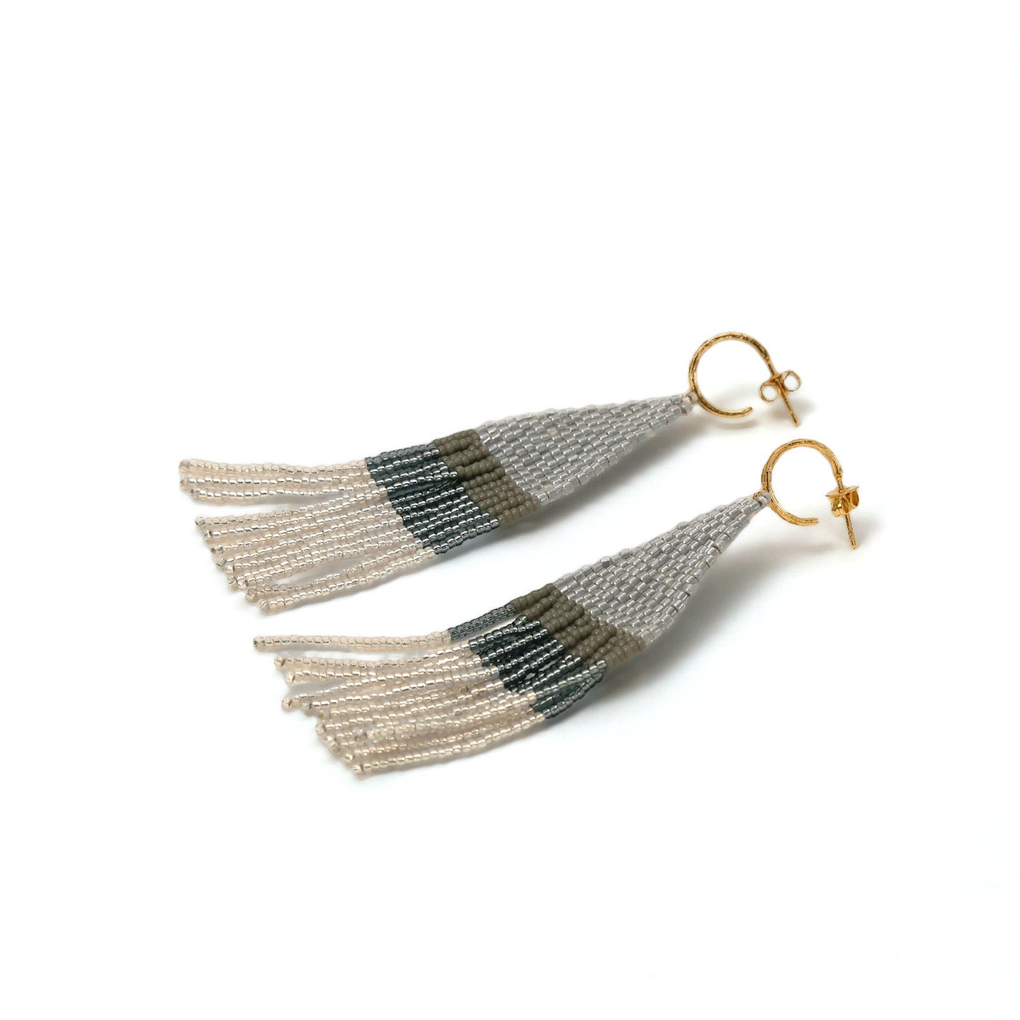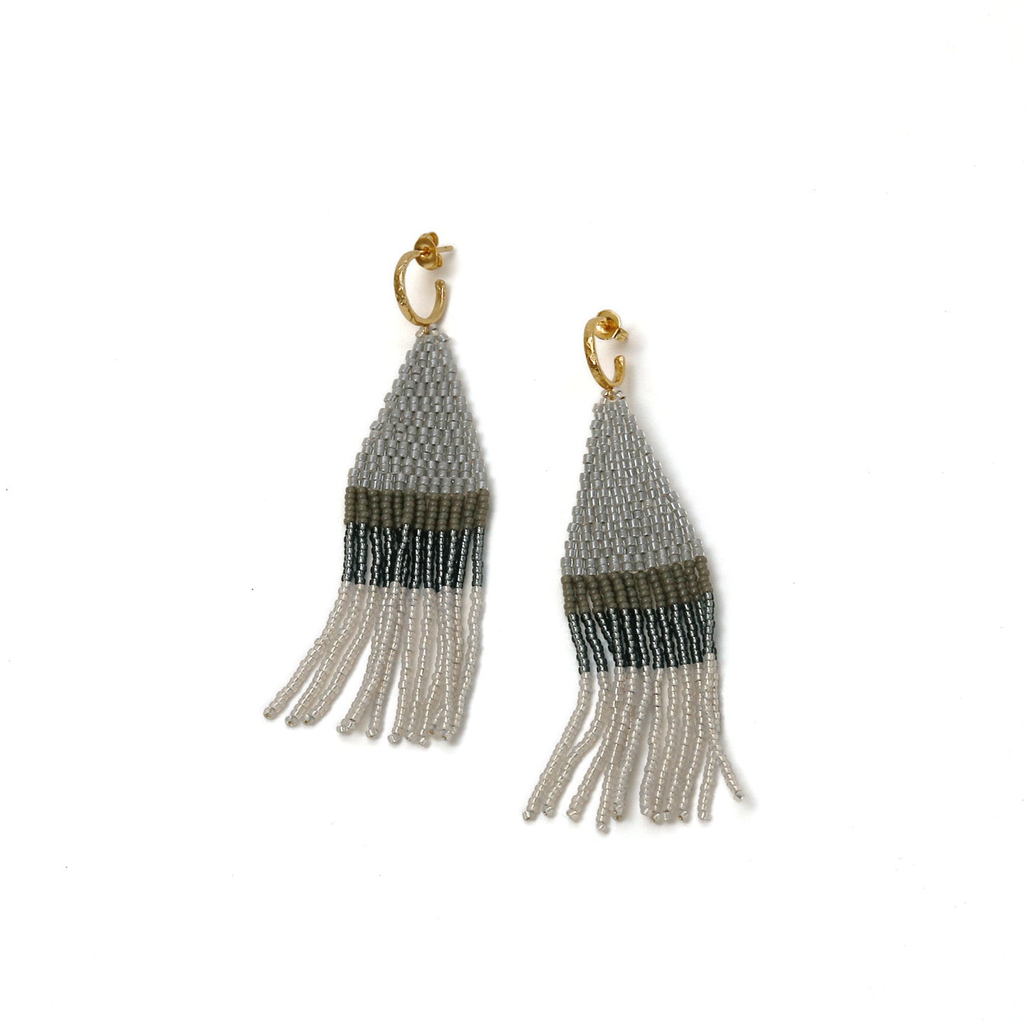 Franja earrings shift color in a cool ombre effect. Fringe style is set on a huggie post hoop.