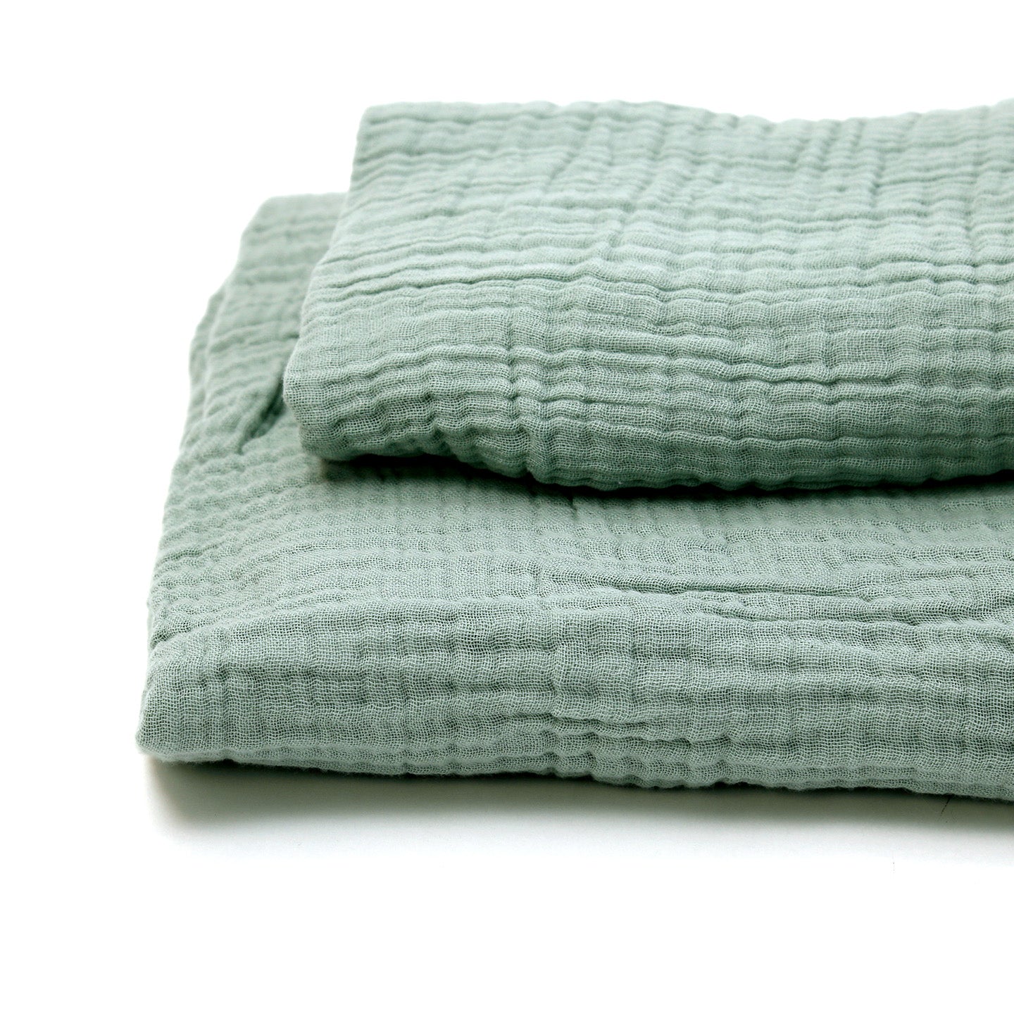 Crafted from 100% pure cotton muslin, these bath linens offer a naturally textured weave that absorbs quickly and dries efficiently. Lightweight and gentle on skin, they're designed to prevent odor while taking up minimal storage space.