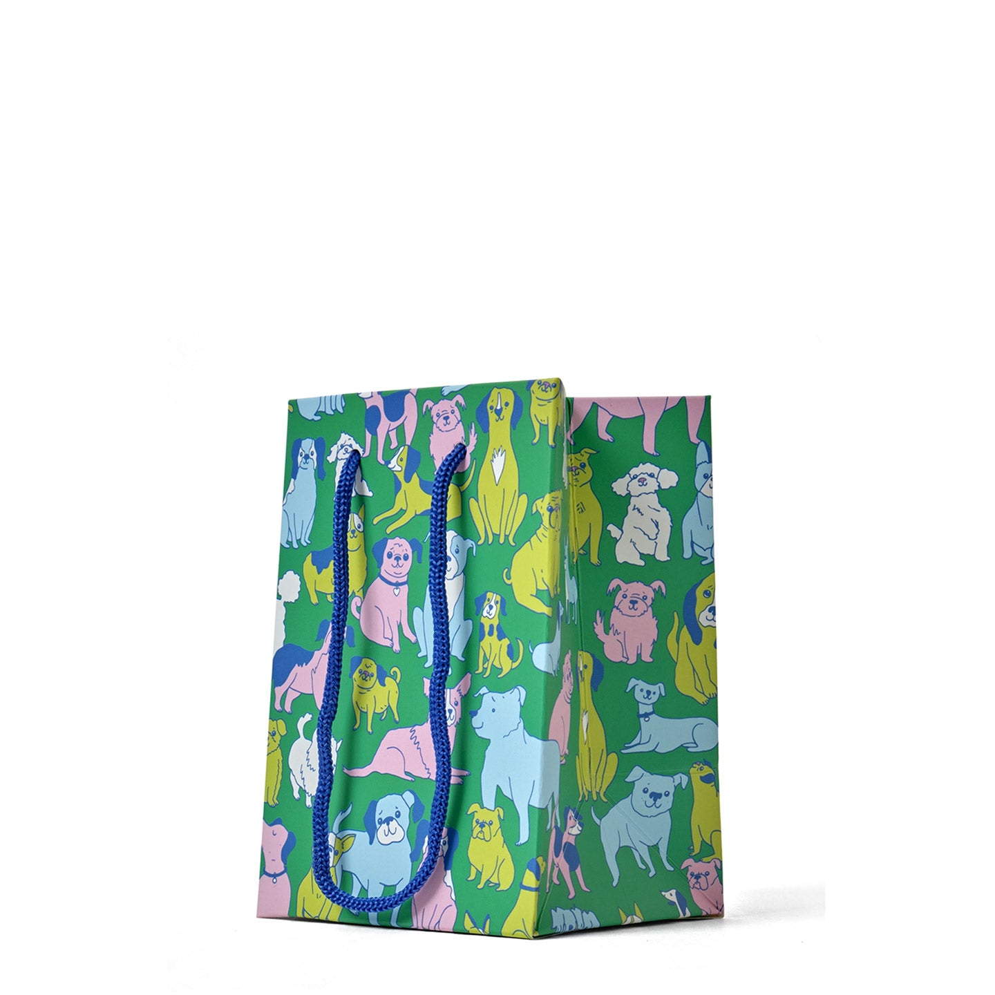 A charming mini gift bag featuring a fun dog print. Perfect for wrapping small treasures with style and personality.