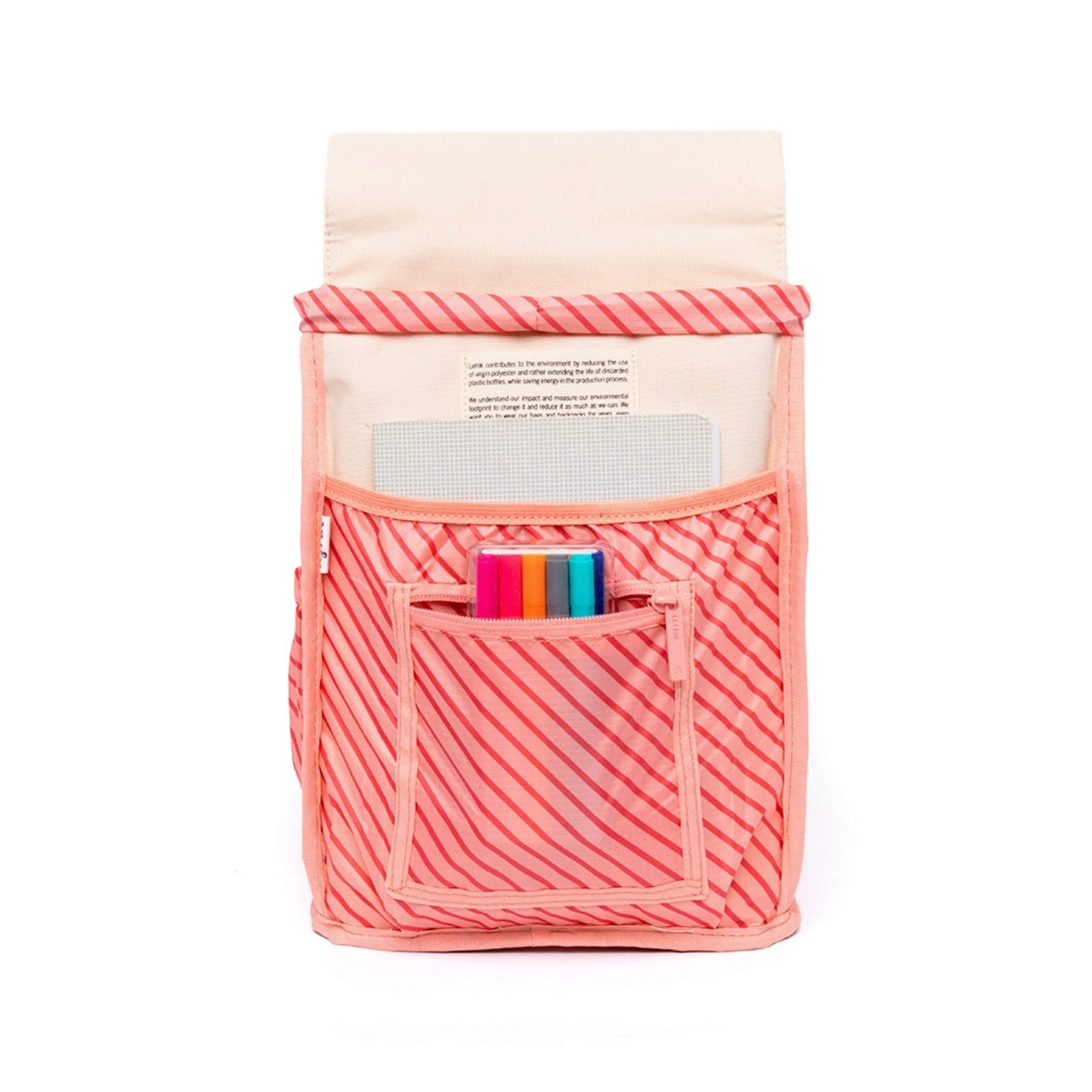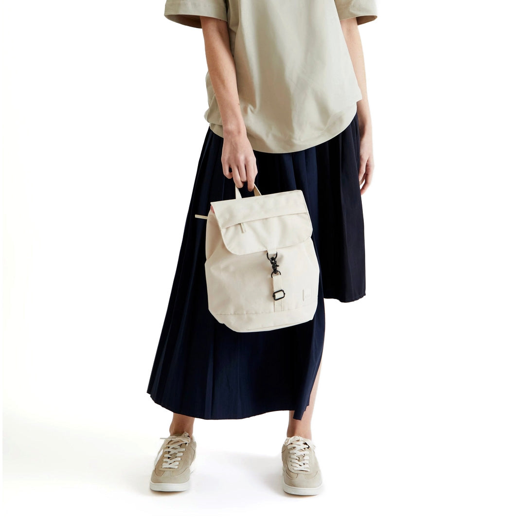 The Scout Mini is a small sustainable backpack, designed for small objects or as a perfect school rucksack for kids. The cotton handles make it comfortable to carry around. It features a separate inside compartment, an inside zipped pocket, and a zipped security pocket in the back. Its drawstring, flap, and clasp closure keep your belongings protected from rainy days.