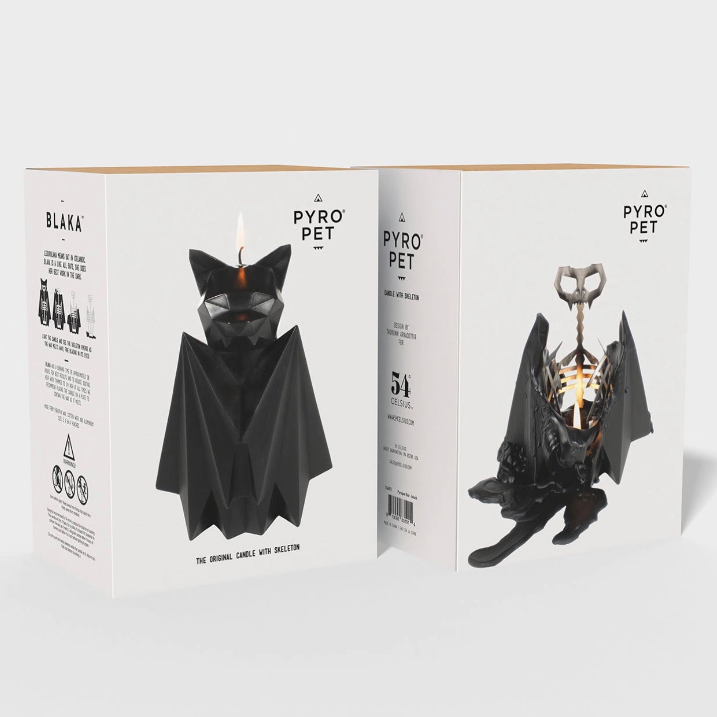 Not your average candle. This is a candle in the shape of a bat, yet with a hidden secret. Inside, it has an aluminum skeleton that is slowly revealed as the candle melts. This candle is lovely as a decorative candle and makes for a surprising gift.