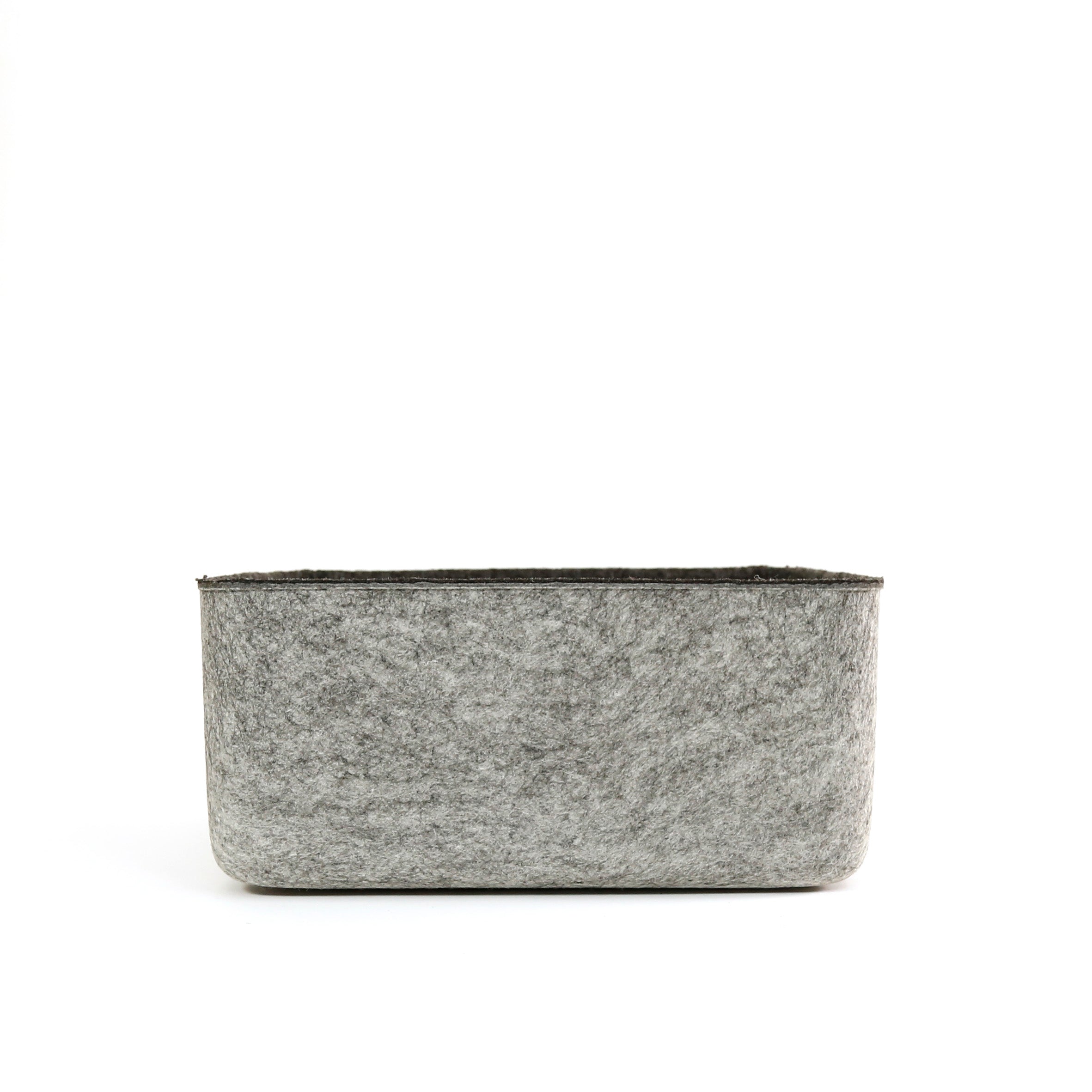 Embrace a clutter-free home without compromising your environmental commitment with this recycled felt storage bin. This bin minimizes both clutter in your home and waste in landfills. Made from 100% post-consumer recycled PET.