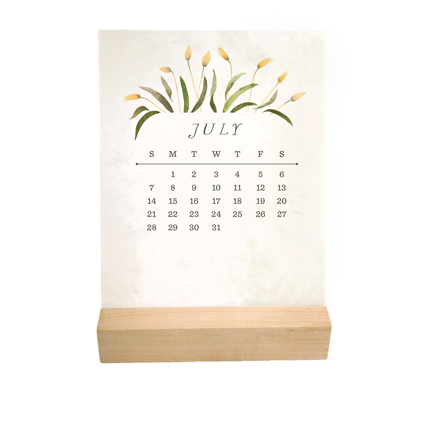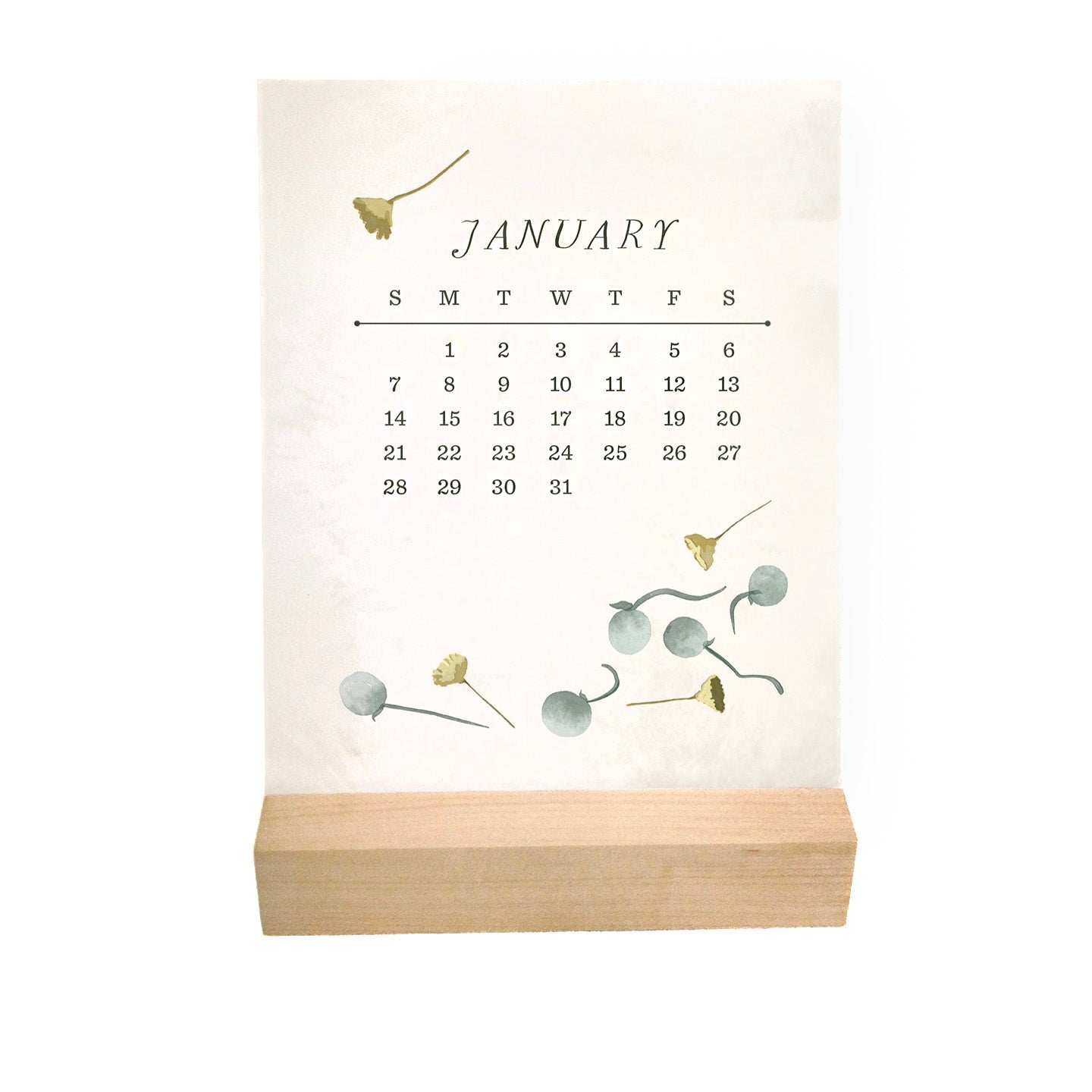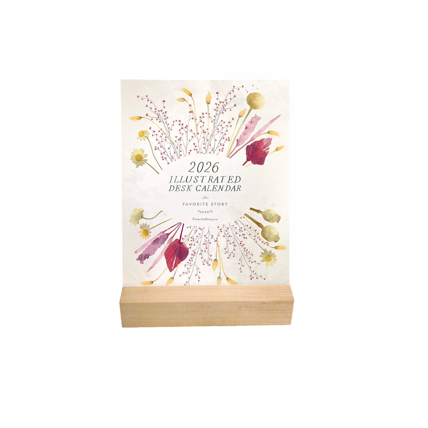 Original illustrations of botanicals and field flowers adorn this 12-month desk calendar.