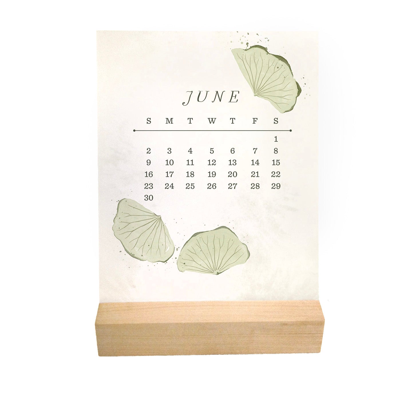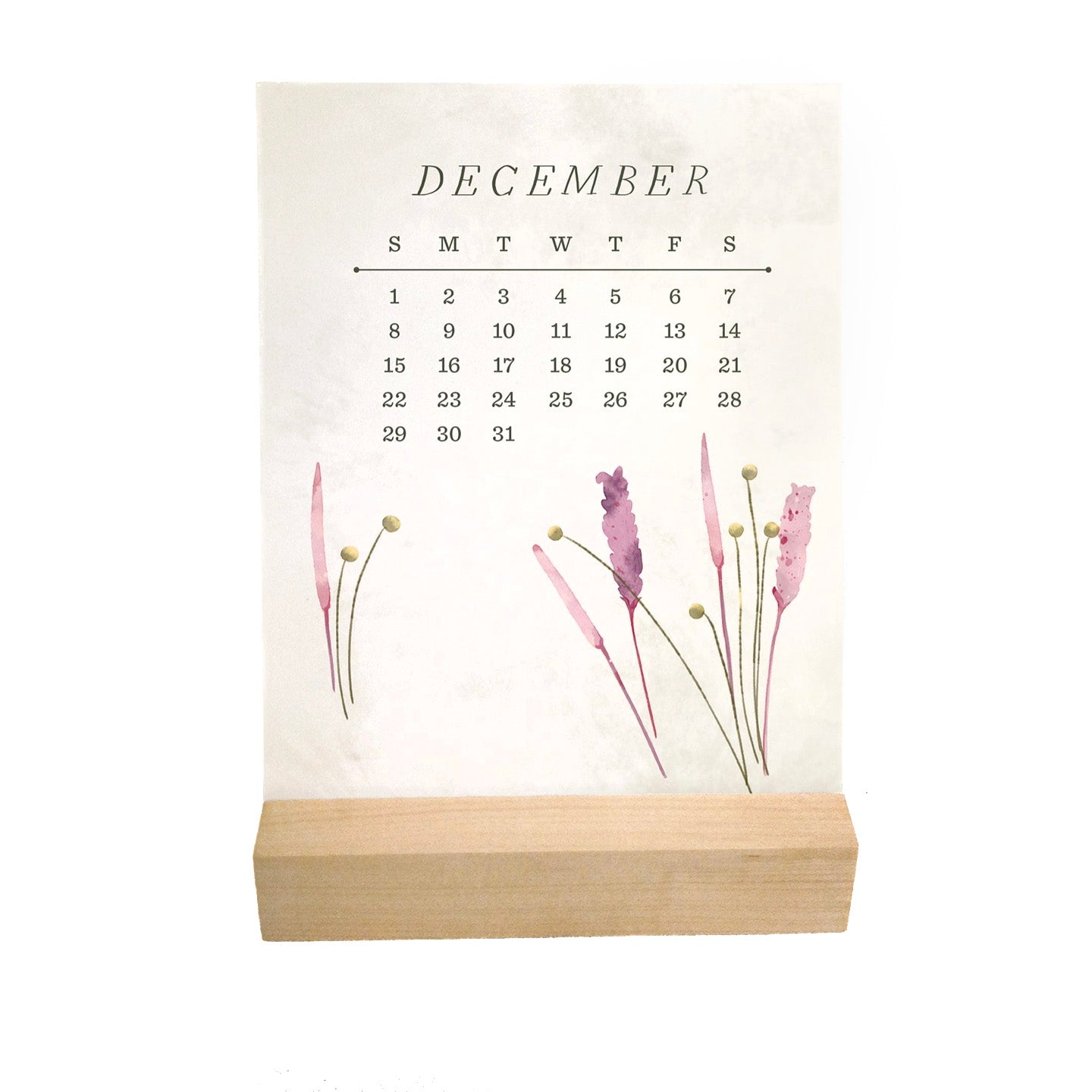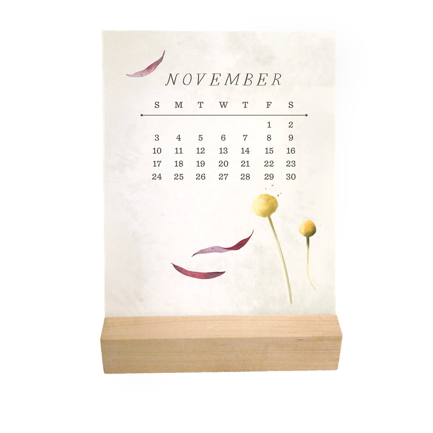 Original illustrations of botanicals and field flowers adorn this 12-month desk calendar.