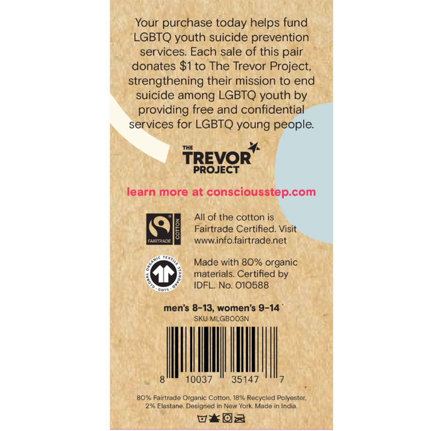 Each pair donates $1 to support The Trevor Project’s life-saving hotline for LGBTQ youth.