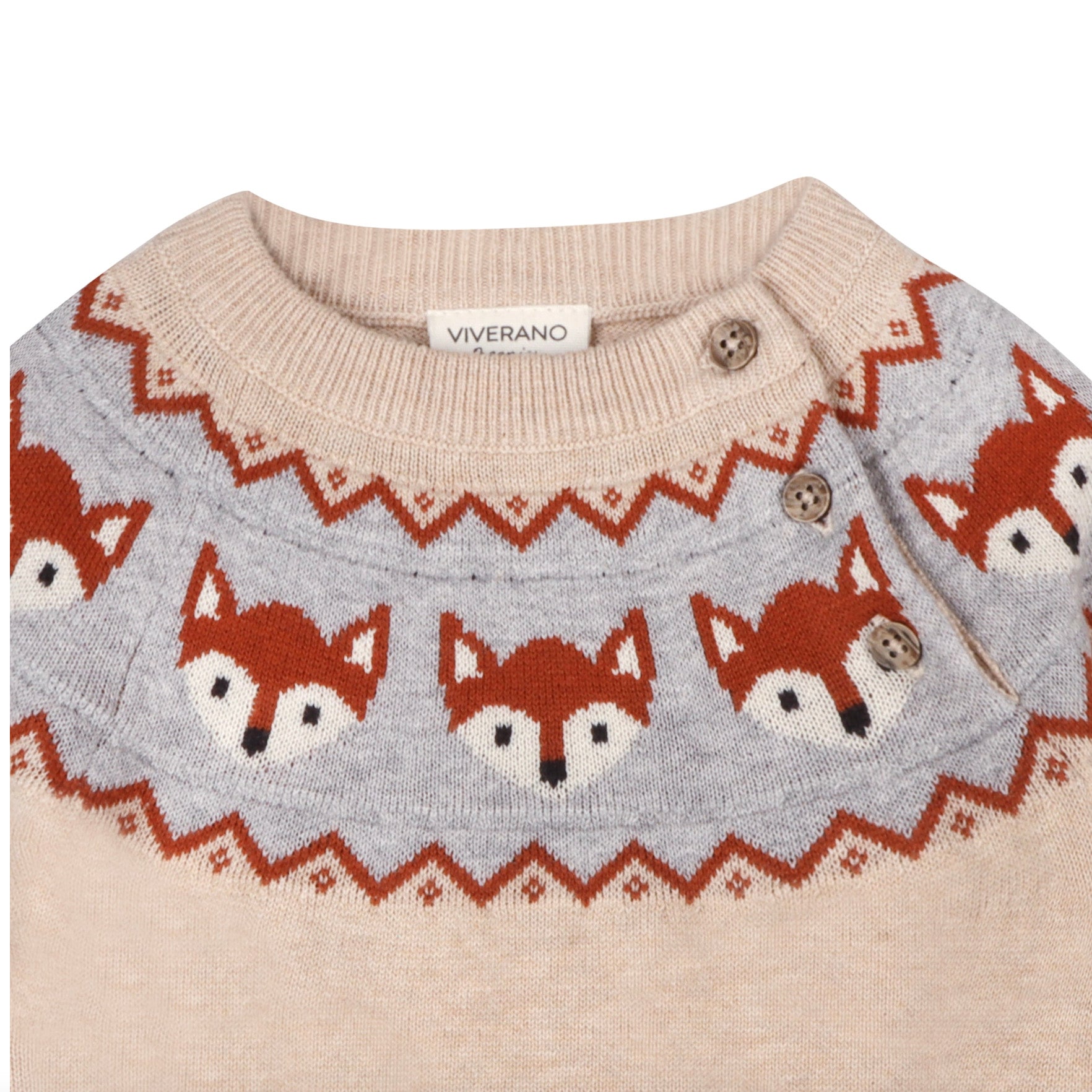 Buttery soft knit baby sweater with adorable fair isle fox jacquard loom design. Side button detail for easy wear and modern styling. All-season, lightweight, & breathable.