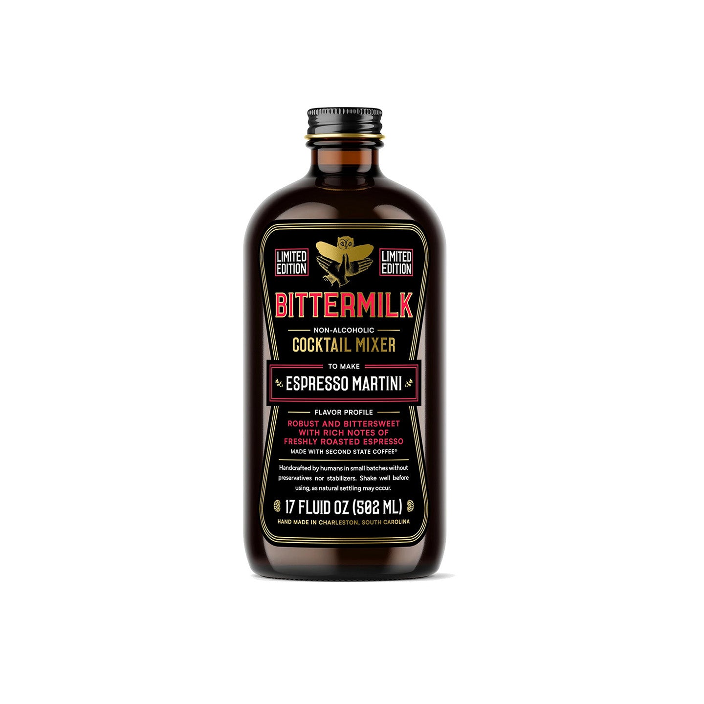 Not your average Espresso Martini, this mixer is robust and bittersweet with rich notes of freshly roasted coffee and cacao. Partnering with Charleston-based Second State Coffee, they make a robust espresso syrup with dark roasted coffee beans. The combination of demerara sugar and bittersweet burnt sugar balance the deep notes of espresso with bitter chocolate from French Broad Chocolate's cacao fines and a touch of vanilla to add a subtle sweetness. Understanding the value of convenience and consistency without compromising on quality, Bittermilk’s Espresso Martini mixer is handcrafted by bartenders with the finest ingredients to create a decadent, yet energizing martini.