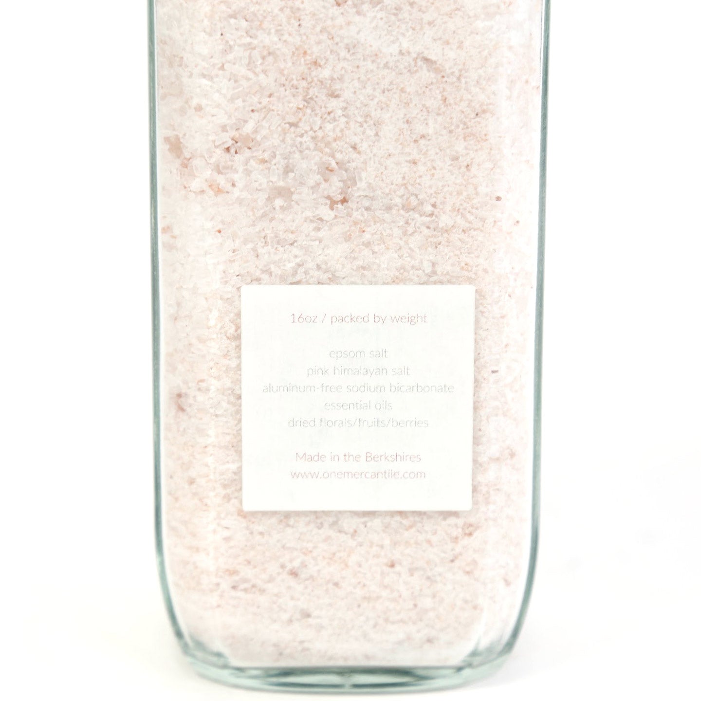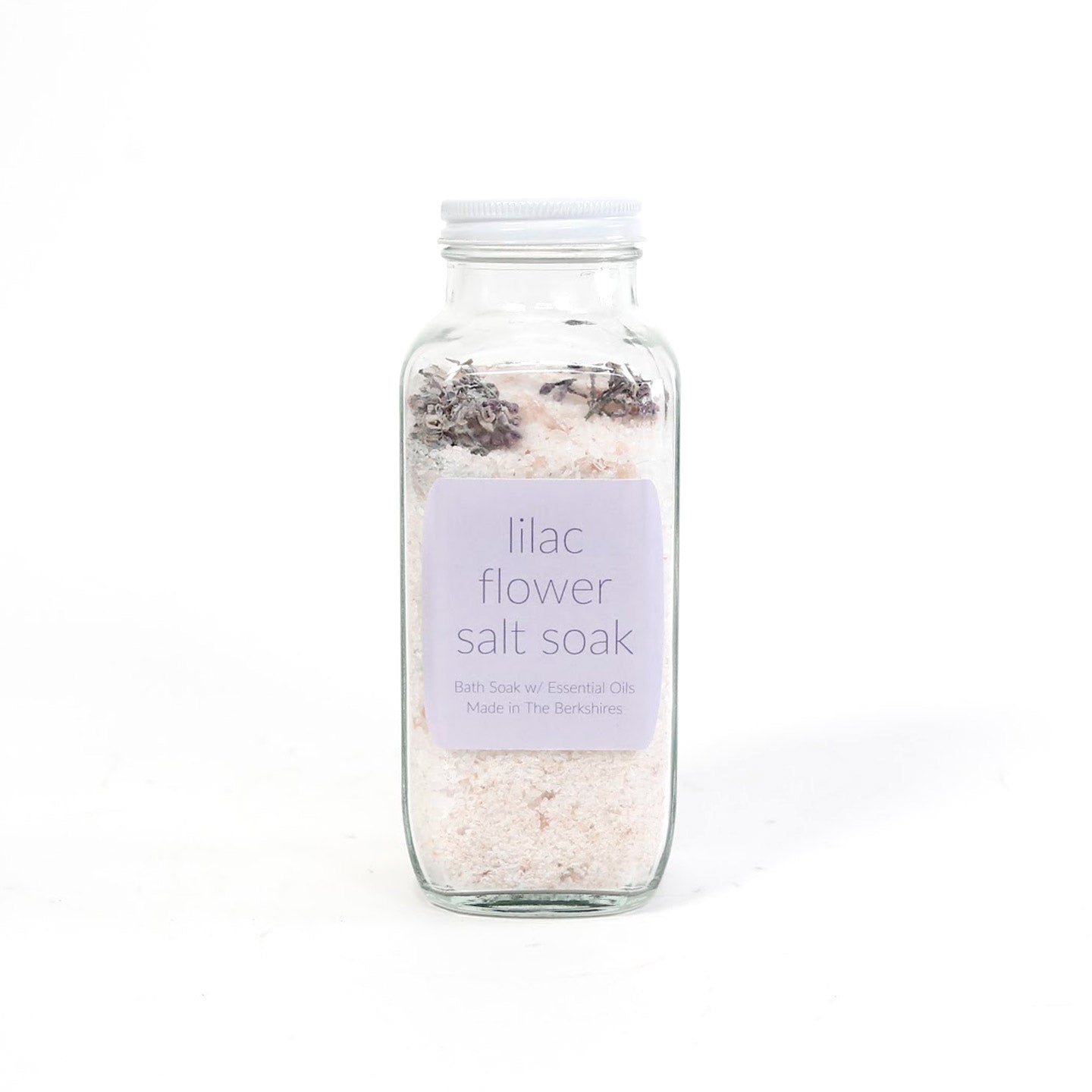 INGREDIENTS: Essential oils of lilac, geranium, and orange blended with pink Himalayan salt, Epsom salt, sodium bicarbonate (aluminum-free baking soda), and topped off with organic dried lilac flowers. Packaged in an eco-re-usable bottle!