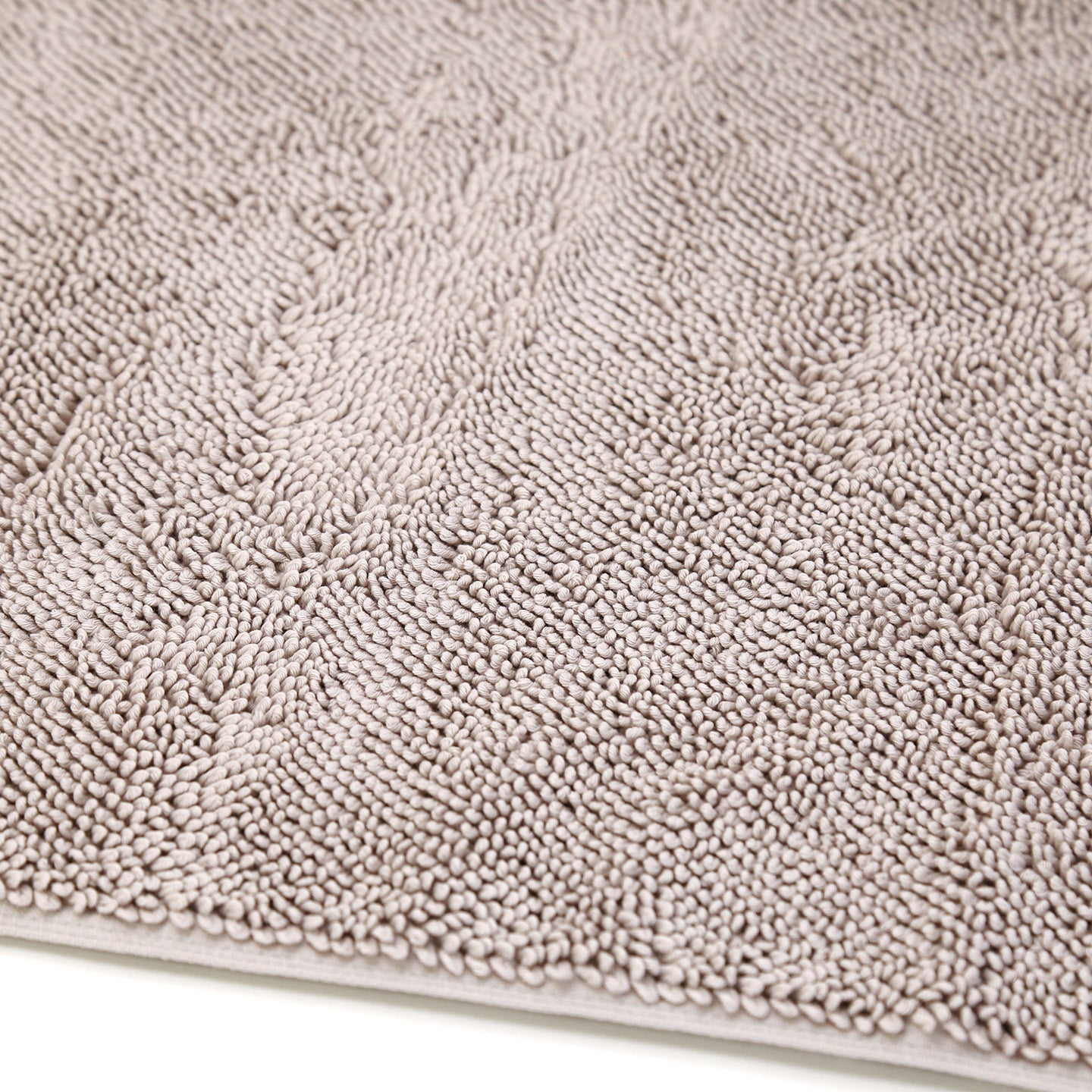 Organic cotton bath mat, expertly crafted in Turkey using 100% certified organic cotton. Featuring a thick, deep looped pile, this mat provides a plush underfoot feel while remaining reversible for enhanced durability and extended life. The towelling-style texture ensures superior absorbency and quick drying.