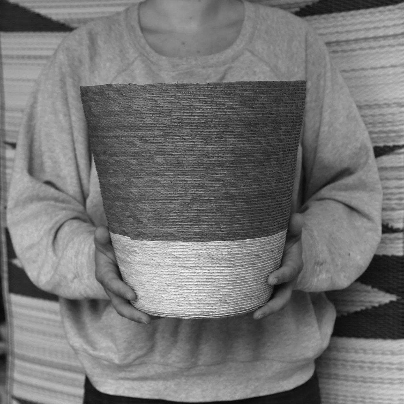 Gorgeous and durable double-layer handwoven conical basket. Made with all-natural materials featuring natural palm fiber and vegetable-dyed color accents.