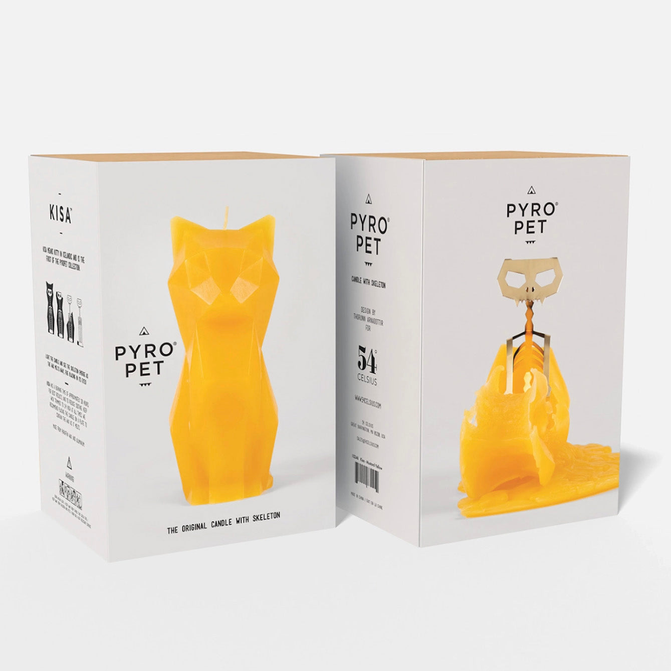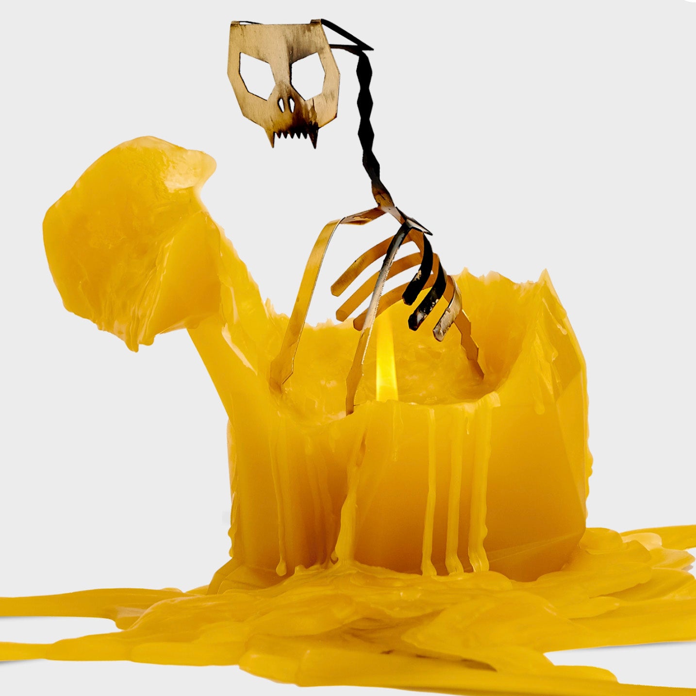 Not your average candle. This is a candle in the shape of a cat, but with a hidden secret. Inside, it has an aluminum skeleton that is slowly revealed as the candle melts. This candle is lovely as a decorative candle and makes for a surprising gift.