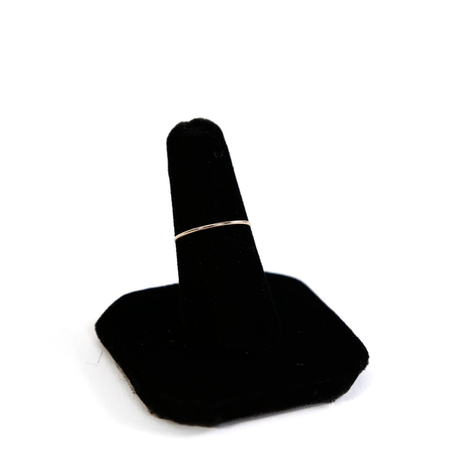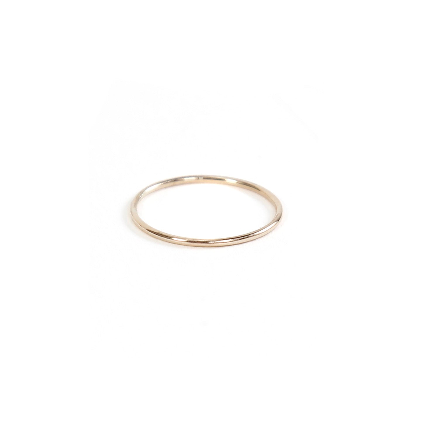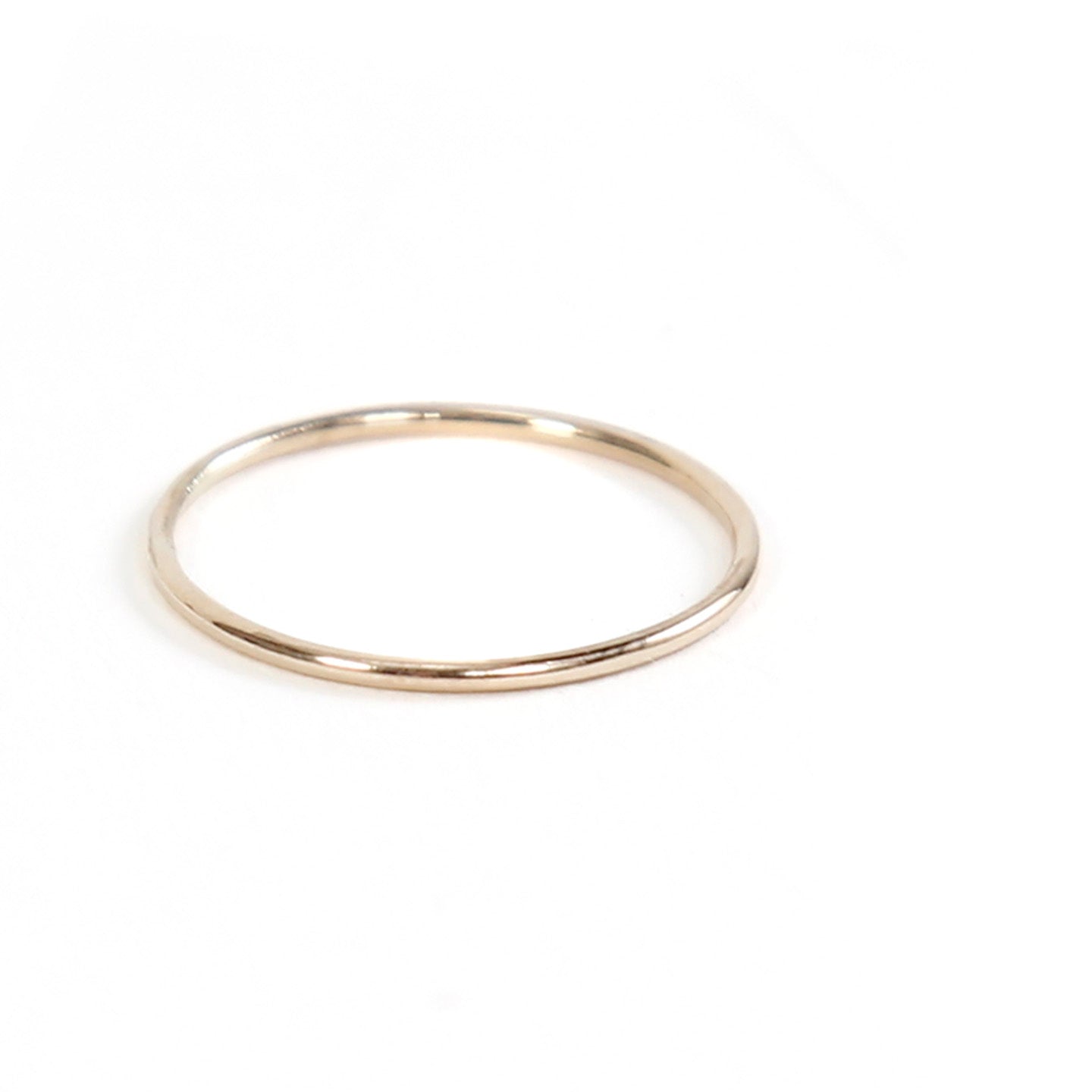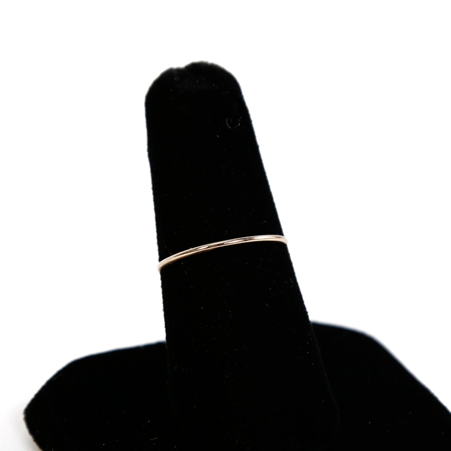 This ring is made with 14k solid gold that is thin and delicate. Its slim design offers an elegant look, while the durable gold material ensures lasting wear. Perfect for everyday by itself or layering with other rings, it combines simplicity with enduring quality.