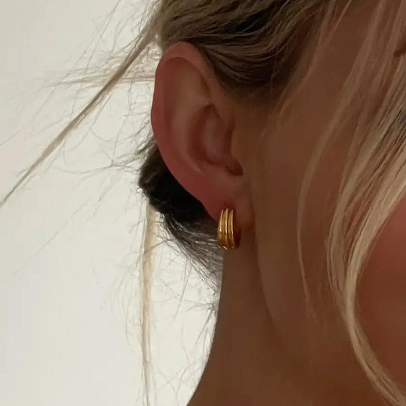 Add some flair to your ears with these small 18k gold-plated brass, wavy hoop earrings.
