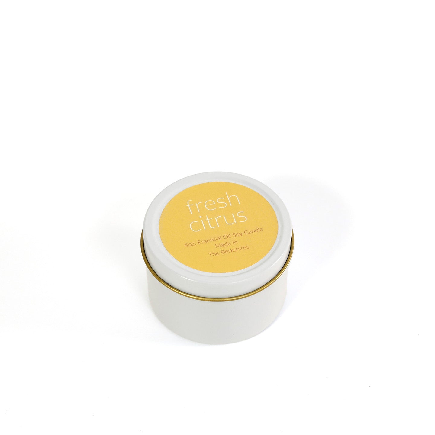 Handmade soy candle made with blended 100% essential oils of Grapefruit, Blood Orange, Bergamot, & Lemongrass for a clean burning, all-natural candle.