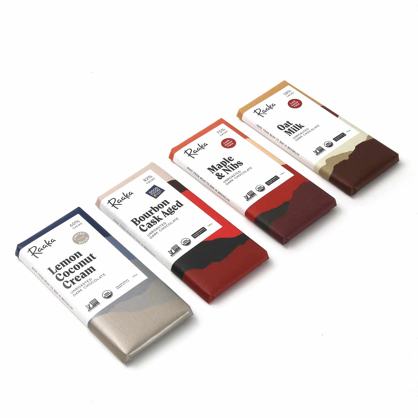 All of Raaka's chocolate is certified organic, certified kosher, vegan, soy-free, gluten-free, and non-GMO and made with ethically sourced, transparently traded unroasted cacao.