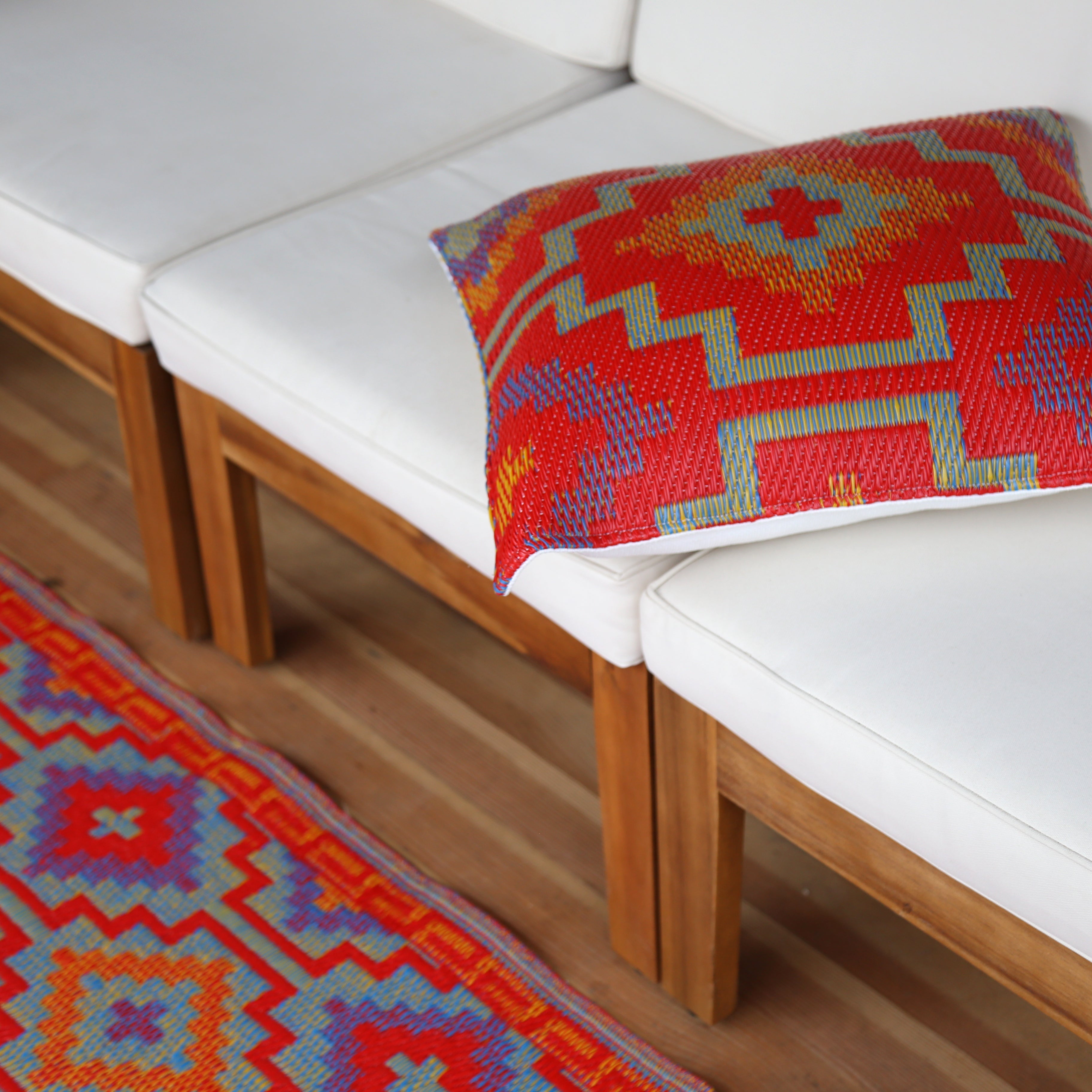 This beautifully crafted rug is made following the fair trade principles. This rug adds a touch of elegance to your home décor. It is made using premium quality recycled plastic straws which are tightly woven together to offer strength, softness, and beauty. Being plastic, moisture will not affect the mat and it will not attract mildew. Can be used indoors or outdoors. Reversible.
