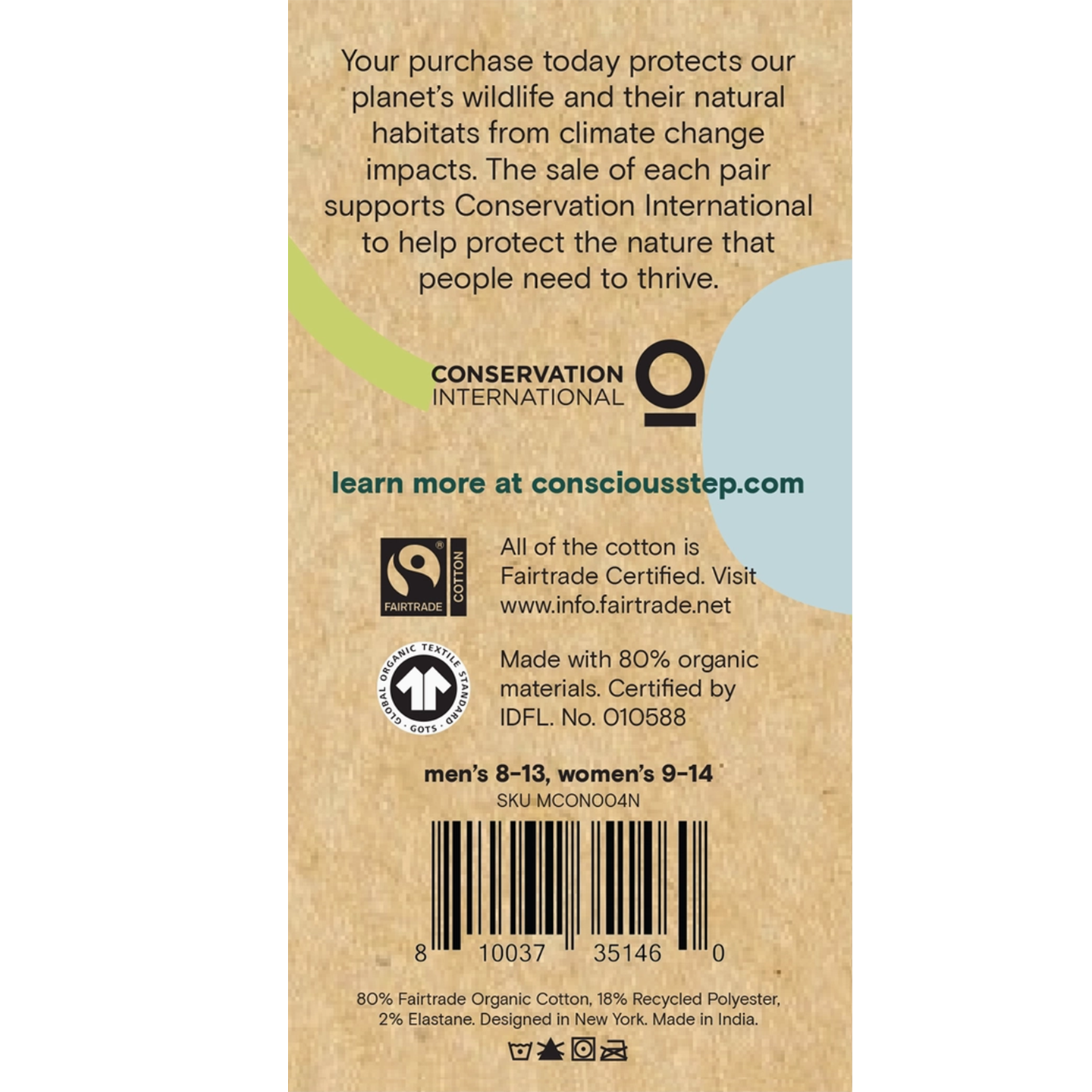Help care for the polar bears! These dark blue socks with polar bear prints stop the adverse effects of climate change through Conservation International. Made with organic cotton, these dark blue socks are easy to pair with any outfit. Each pair is padded with terry to give you extra comfort with every step.
