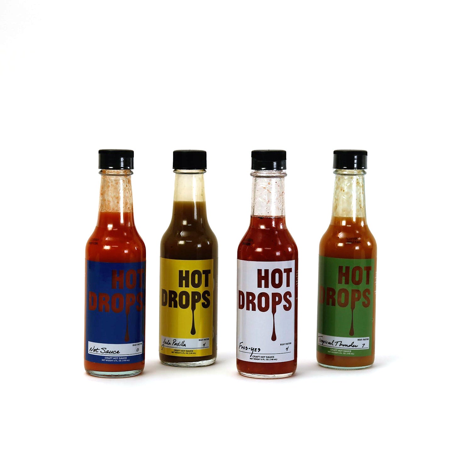 The best way to start, is with a case of "Intro Packs" of the core four. The line-up of the best-selling sauces: - Not Sauce - JalaPasilla - Fres-Yes - Tropical Thunder. Whether you're treating yourself, surprising a friend, impressing a client, or a flavor connoisseur. The intro pack is an exquisitely flavorful group sure to impress!