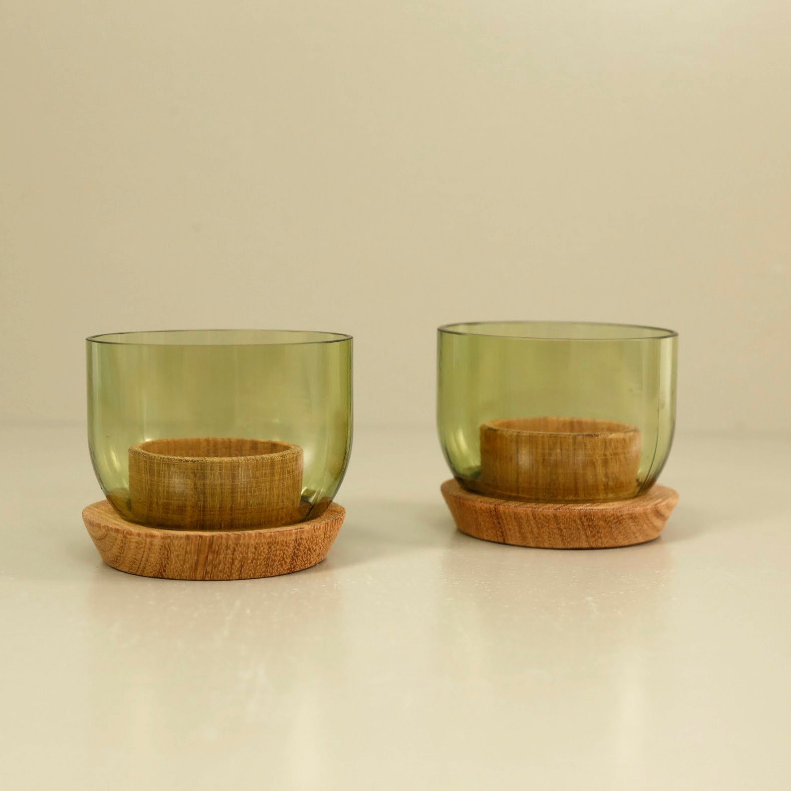 Recycled Bottle Tealight Candle Holder / Short 2pc