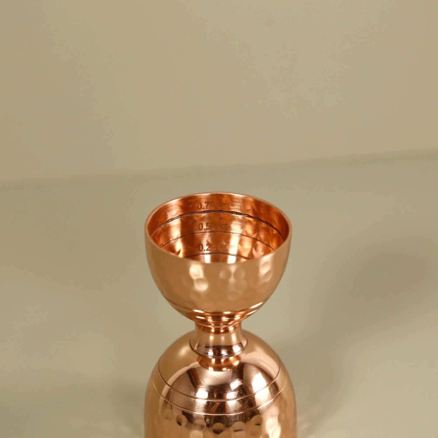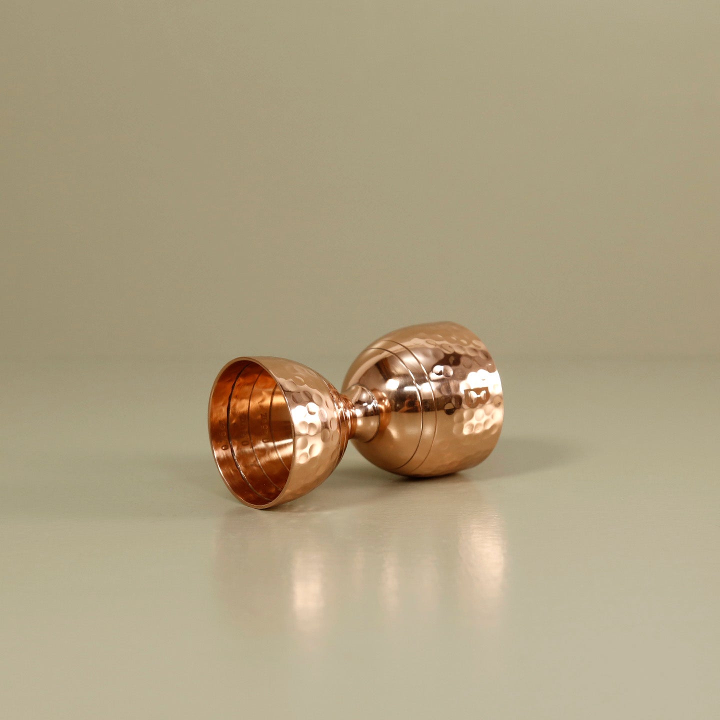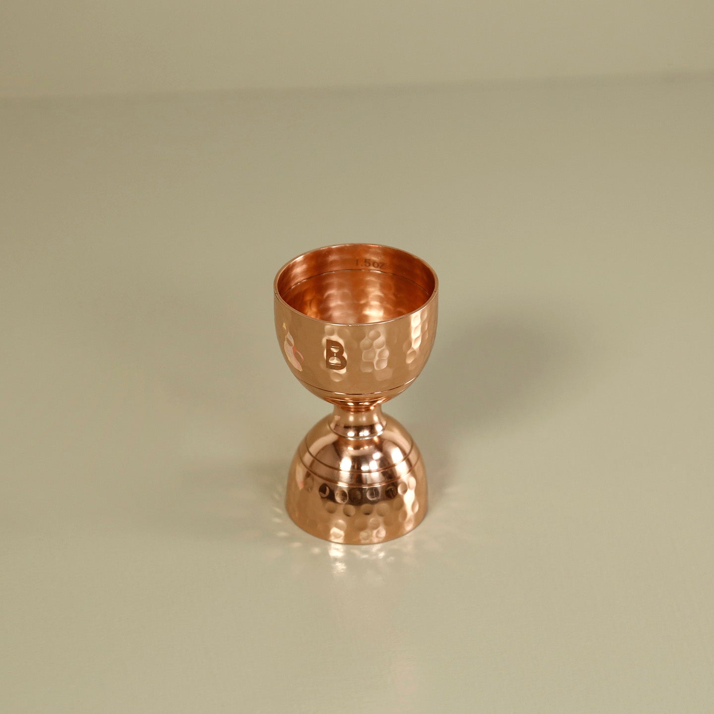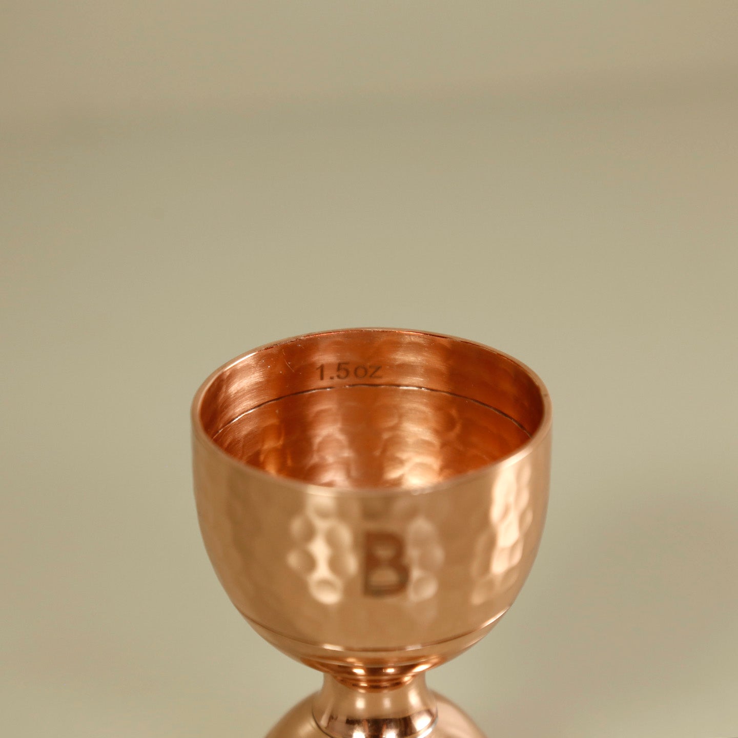 If you’re only going to own one jigger, this bell jigger is the one. The ergonomic design makes it easy to use for as long as you’d like. Thanks to its internal markings, you can easily measure anything from .25 oz to a full 2 oz. It’s the most versatile jigger to have behind the bar or at home. 100% copper with hammered exterior.