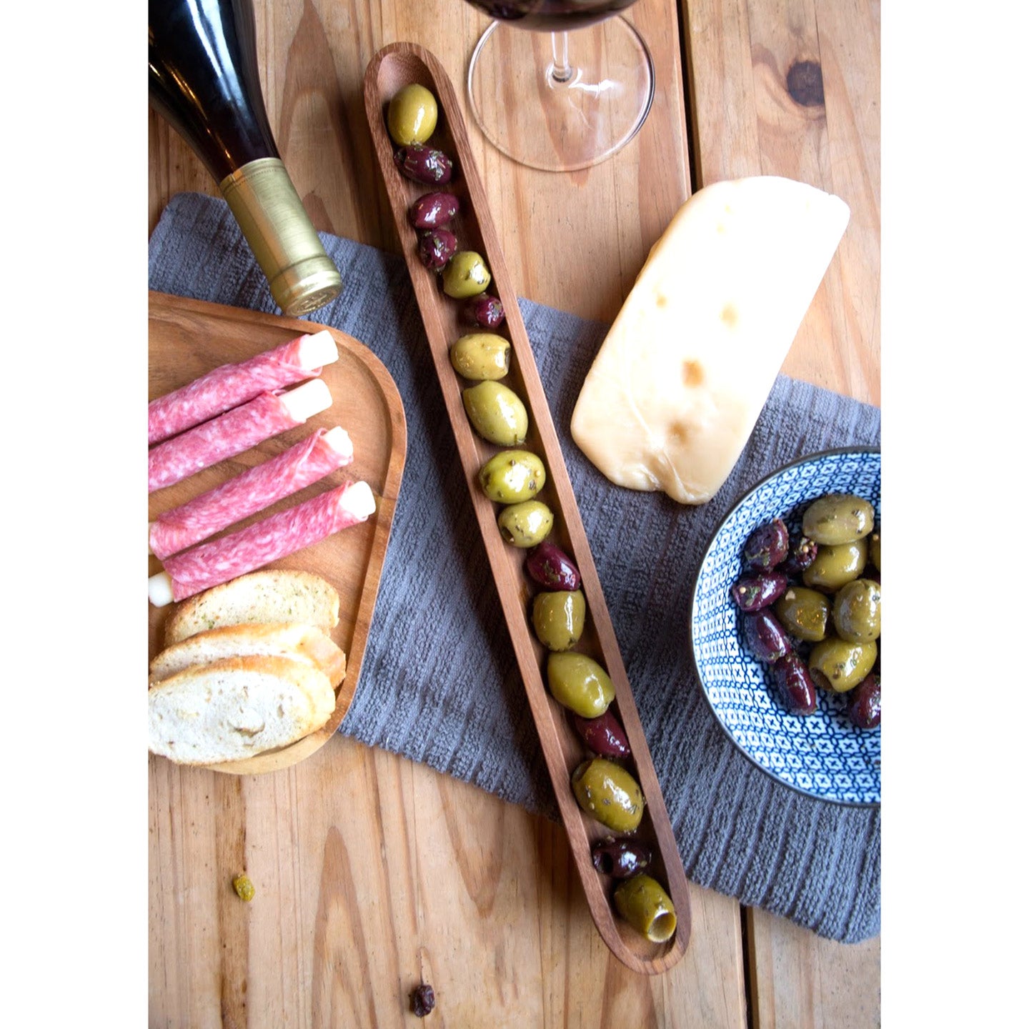 Designed by a restaurateur and woodworker in North Carolina. Handcrafted from sustainably harvested gorgeous acacia wood, known for its unique and natural contrasting patterns. Put a modern twist on entertaining, serve olives, nuts and more with this unique serving piece. High quality, sturdy construction and decorative design offers extensive uses.