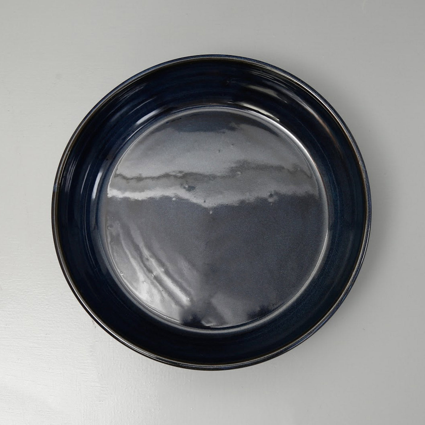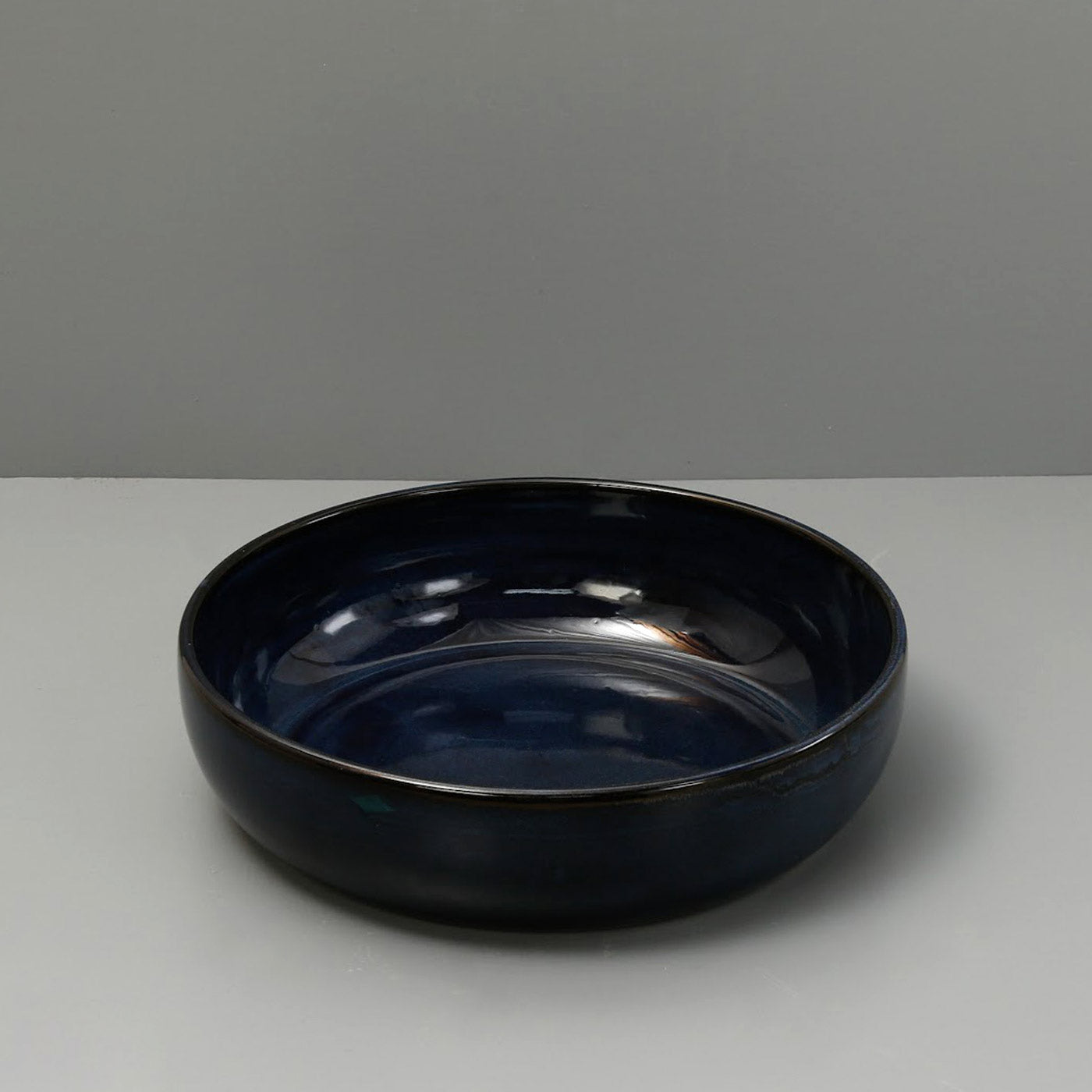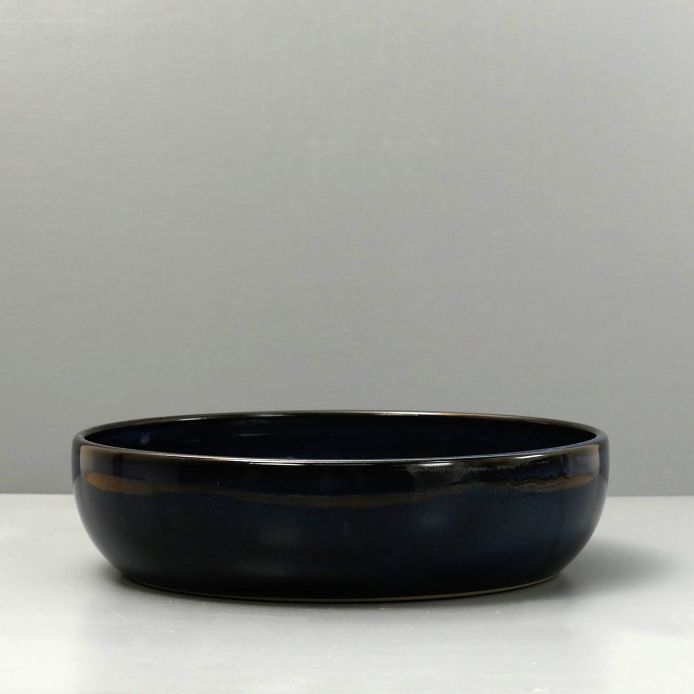 This handmade serving bowl provides a unique modern shape. It is shallow, minimal and so chic, perfect for effortless and elegant dining. It is offered in matte for rustic beauty and interior glazed to minimize cutlery marks. Made of enameled stoneware and completely free of heavy toxic metals.