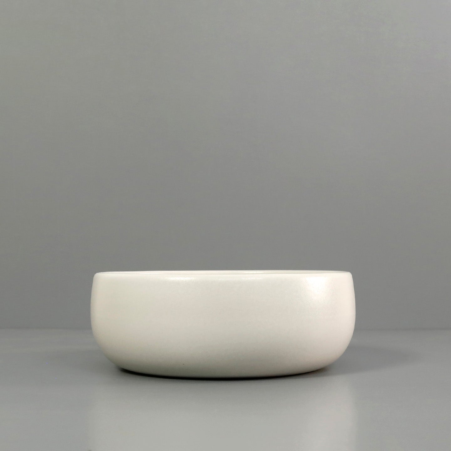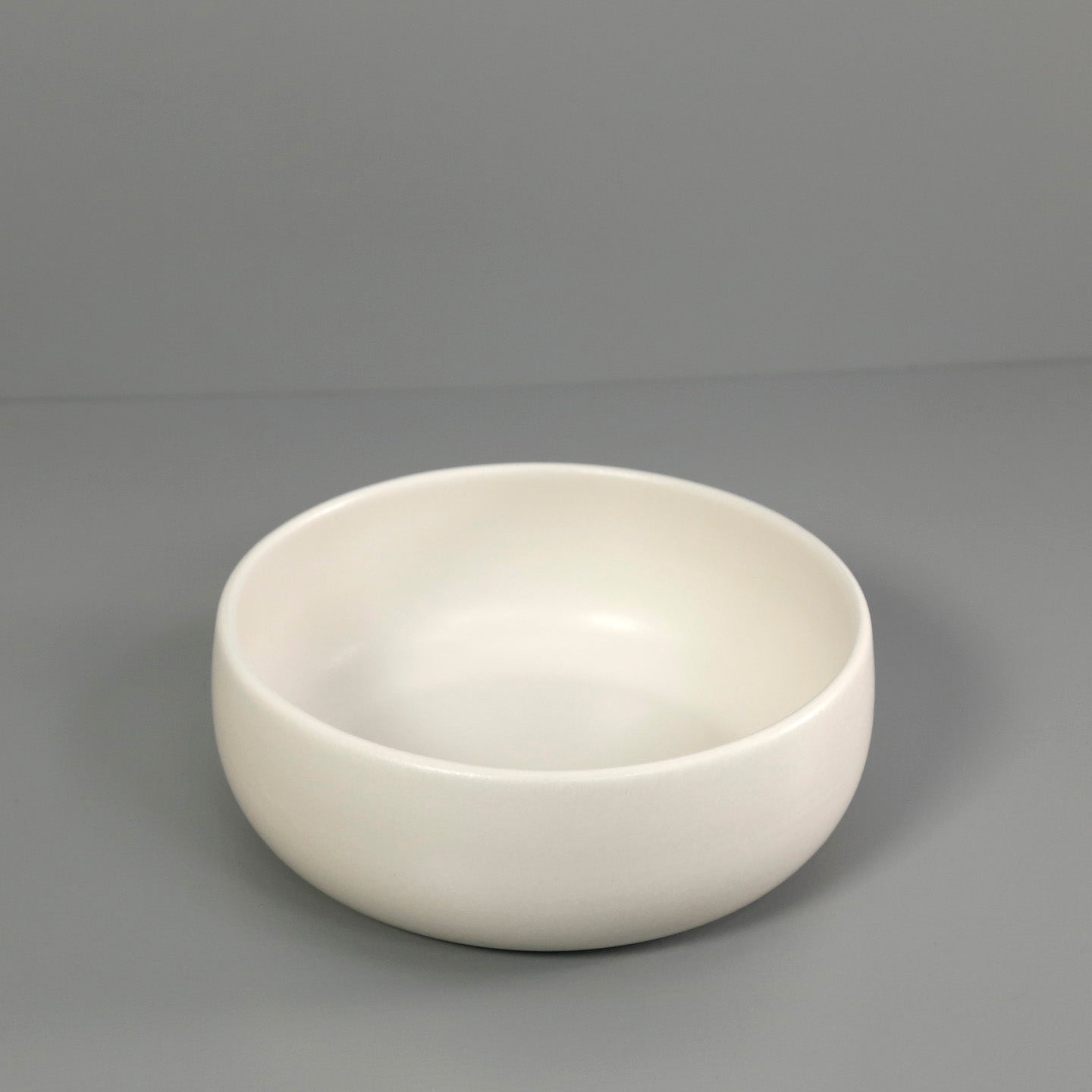 This handmade serving bowl provides a unique modern shape. It is shallow, minimal and so chic, perfect for effortless and elegant dining. It is offered in matte for rustic beauty and interior glazed to minimize cutlery marks. Made of enameled stoneware and completely free of heavy toxic metals.