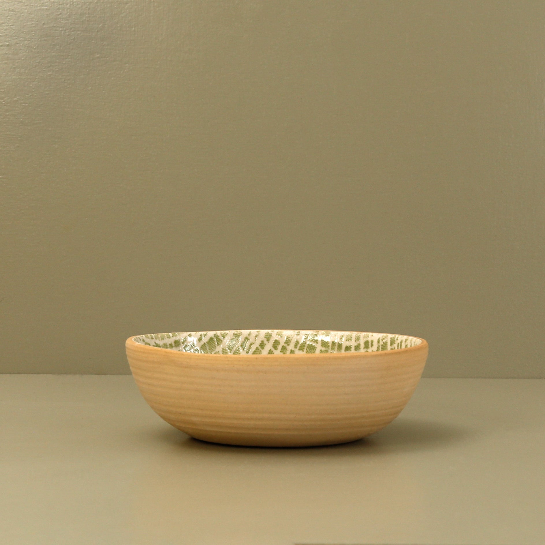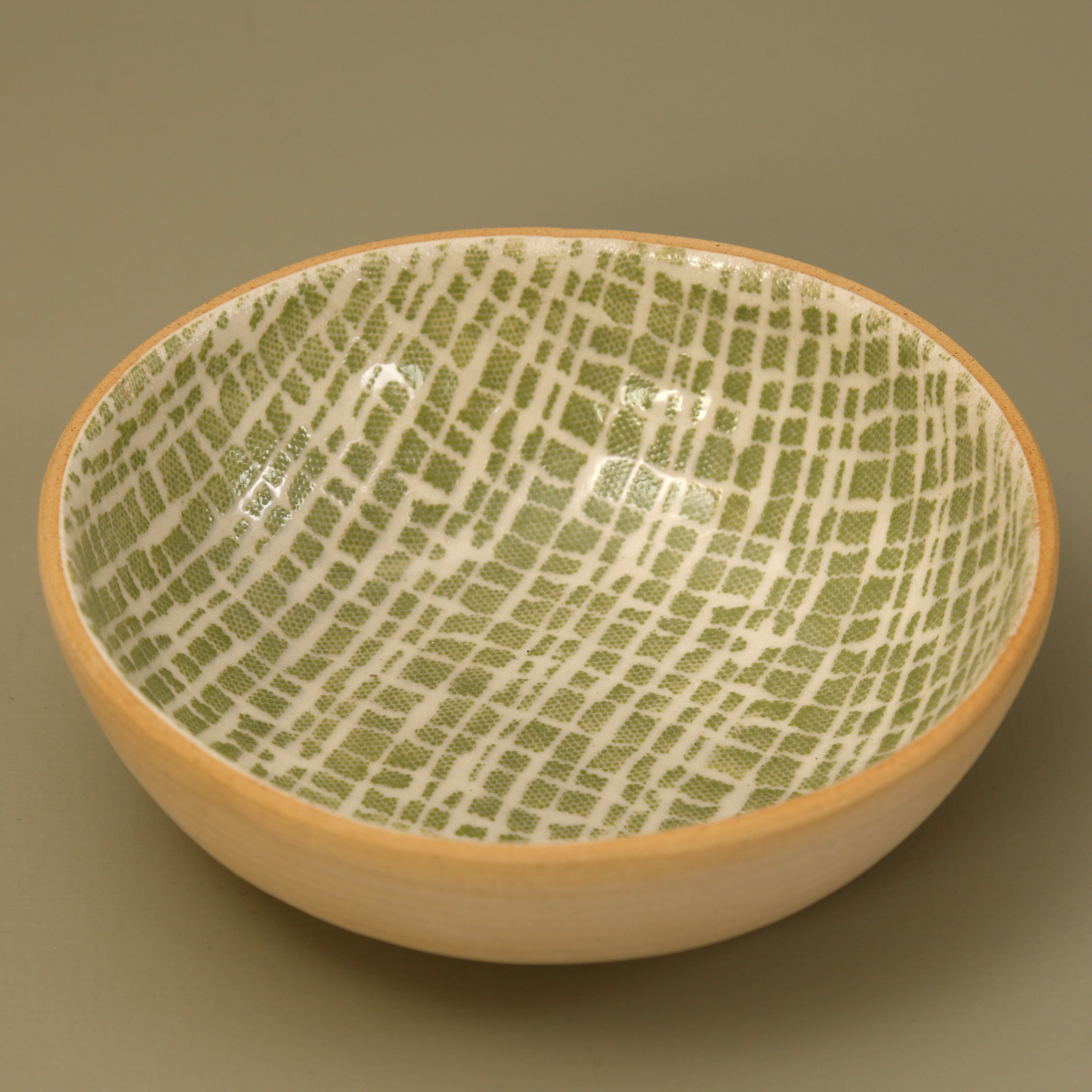 Handmade ceramic bowls made using a unique process of glazing over lace and materials to create gorgeous designs and texture. Each piece is signed and dated on the bottom.