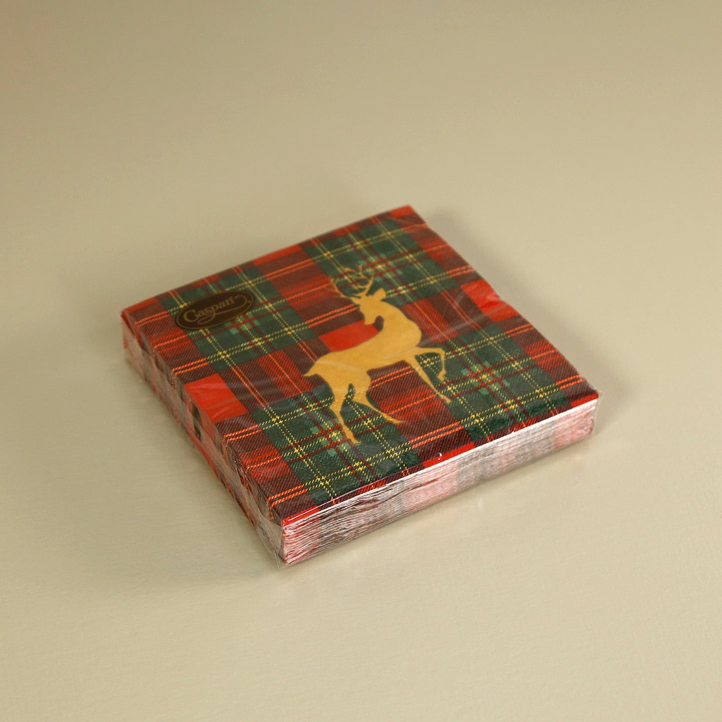Caspari Paper Cocktail Napkins / Reindeer Tartan
