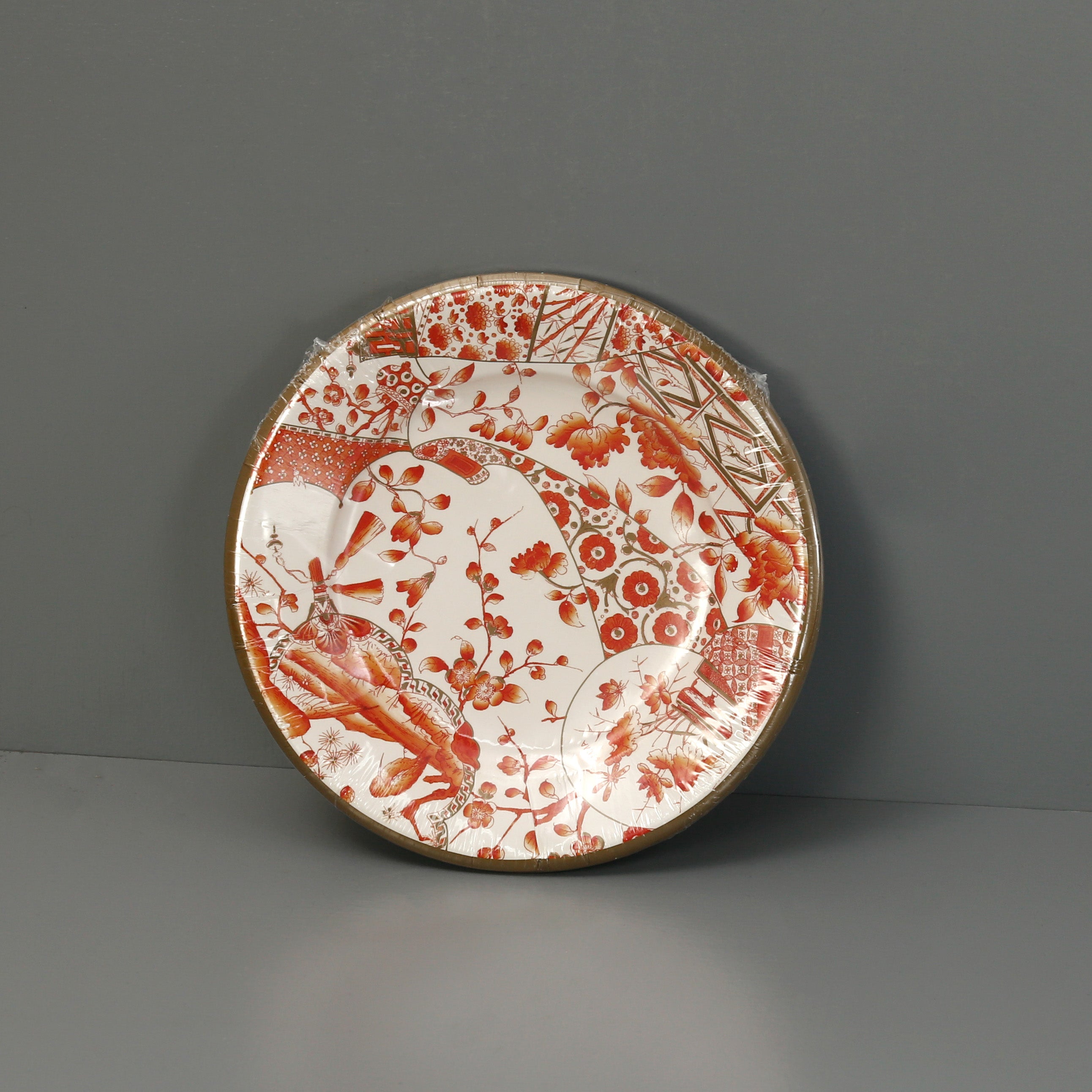 Caspari Paper Salad & Dessert Plates / Gilded Porcelain Coral