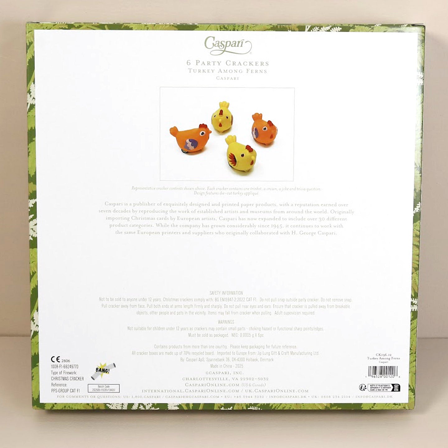 These crackers are each filled with festive surprises and feature classic Caspari paper designs, bows, appliques, and more. Individuals or partners grab the ends and pull open the cracker with a “bang” and reveal the prizes inside. Each Cracker contains a tissue paper crown, a joke, and one toy trinket.