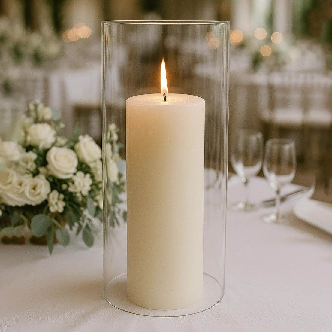 This Hurricane Chimney Tube is a sleek, elegant glass accessory designed to shield your flame and create a mesmerizing ambiance. Featuring a tall, open design with no bottom, this tube allows for unobstructed light while providing protection from drafts and wind, making it ideal for both indoor and outdoor use. Its timeless, minimalist aesthetic complements any candle style, elevating the overall experience with a soft, radiant glow.