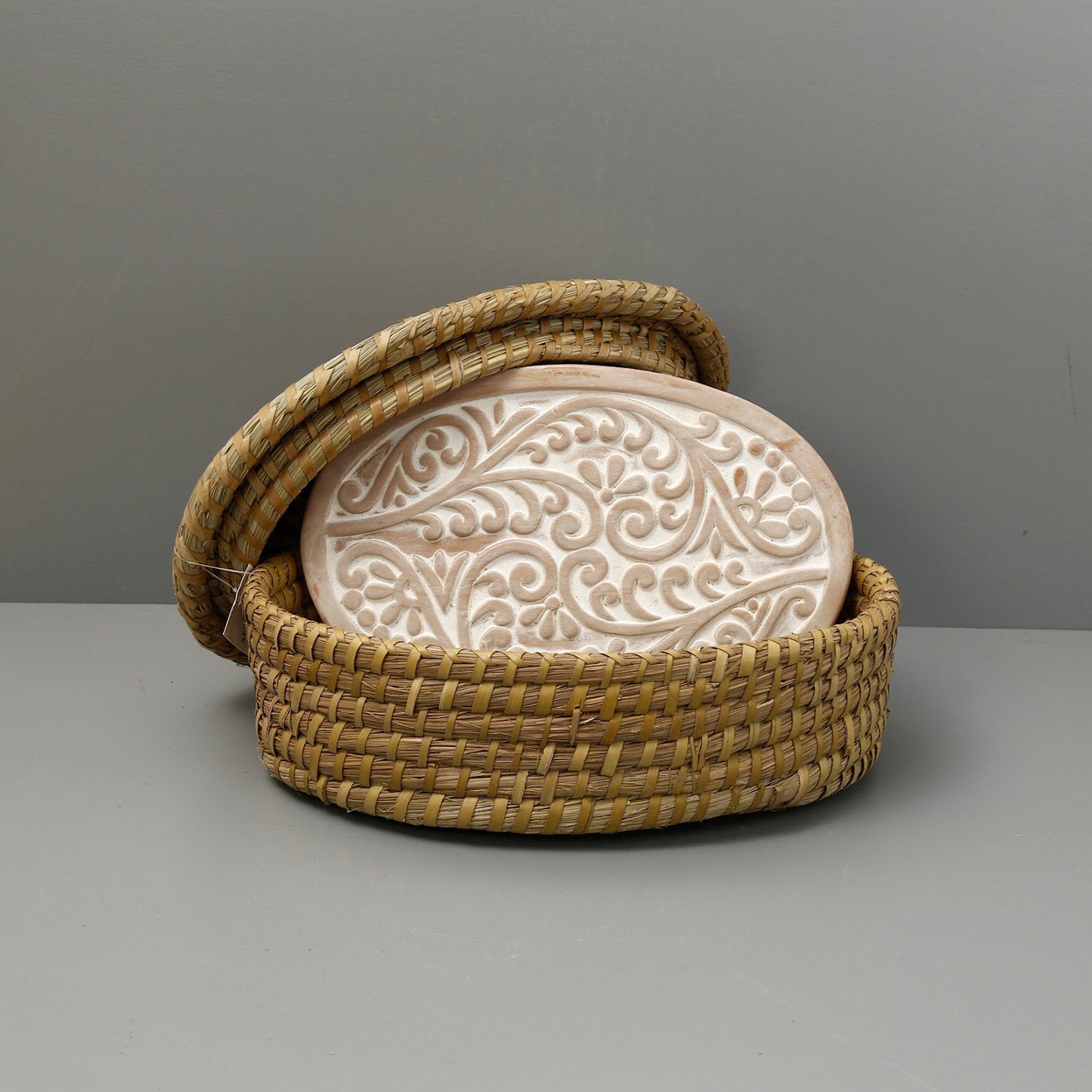 Lidded Vine Bread Basket w/ Terracotta Bread Warmer