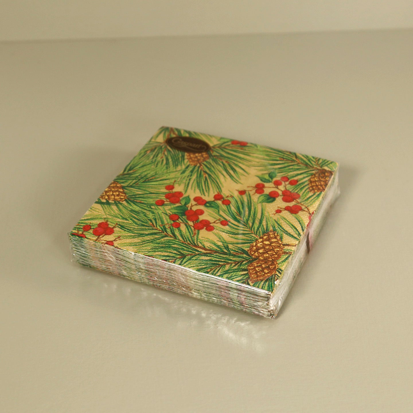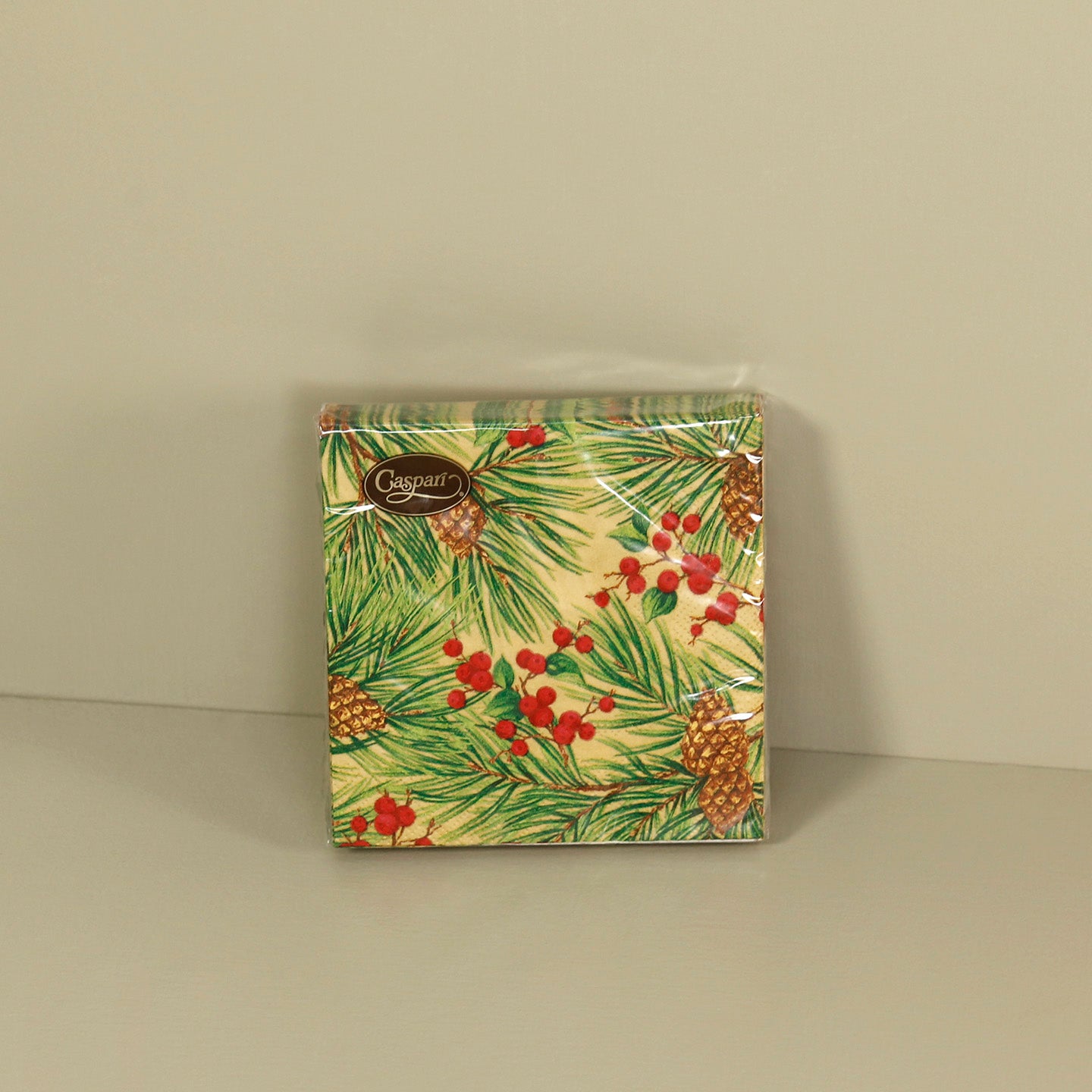 Caspari Paper Cocktail Napkins / Evergreen And Berries