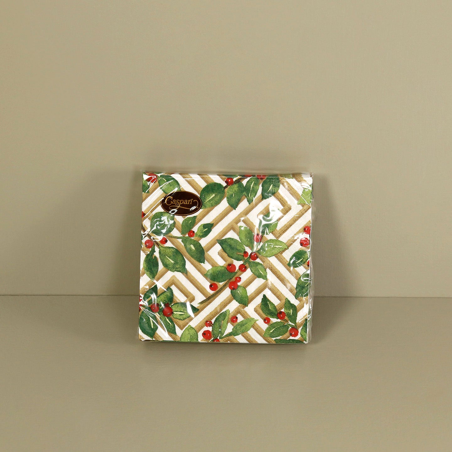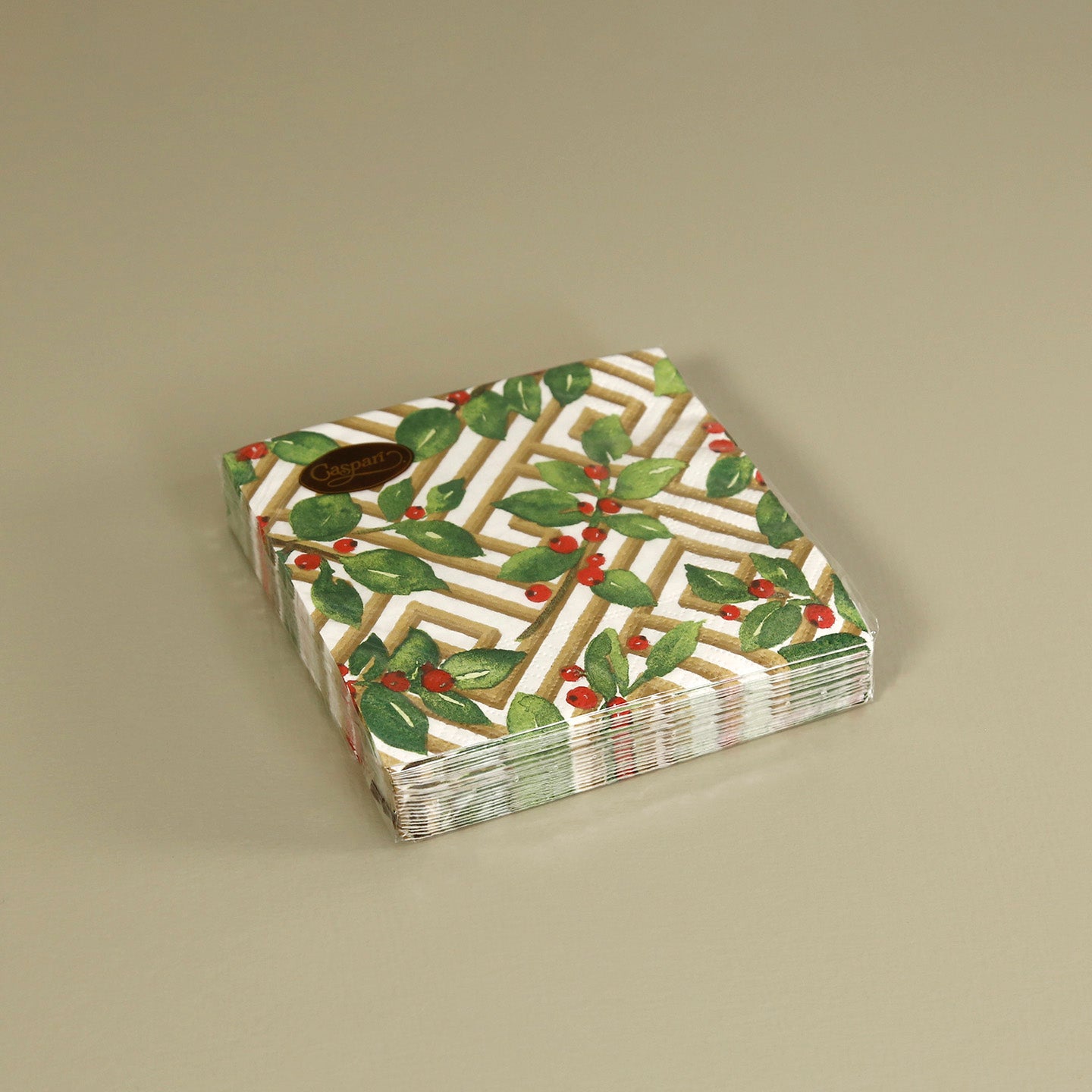 Caspari Paper Cocktail Napkins / Holly and Fretwork