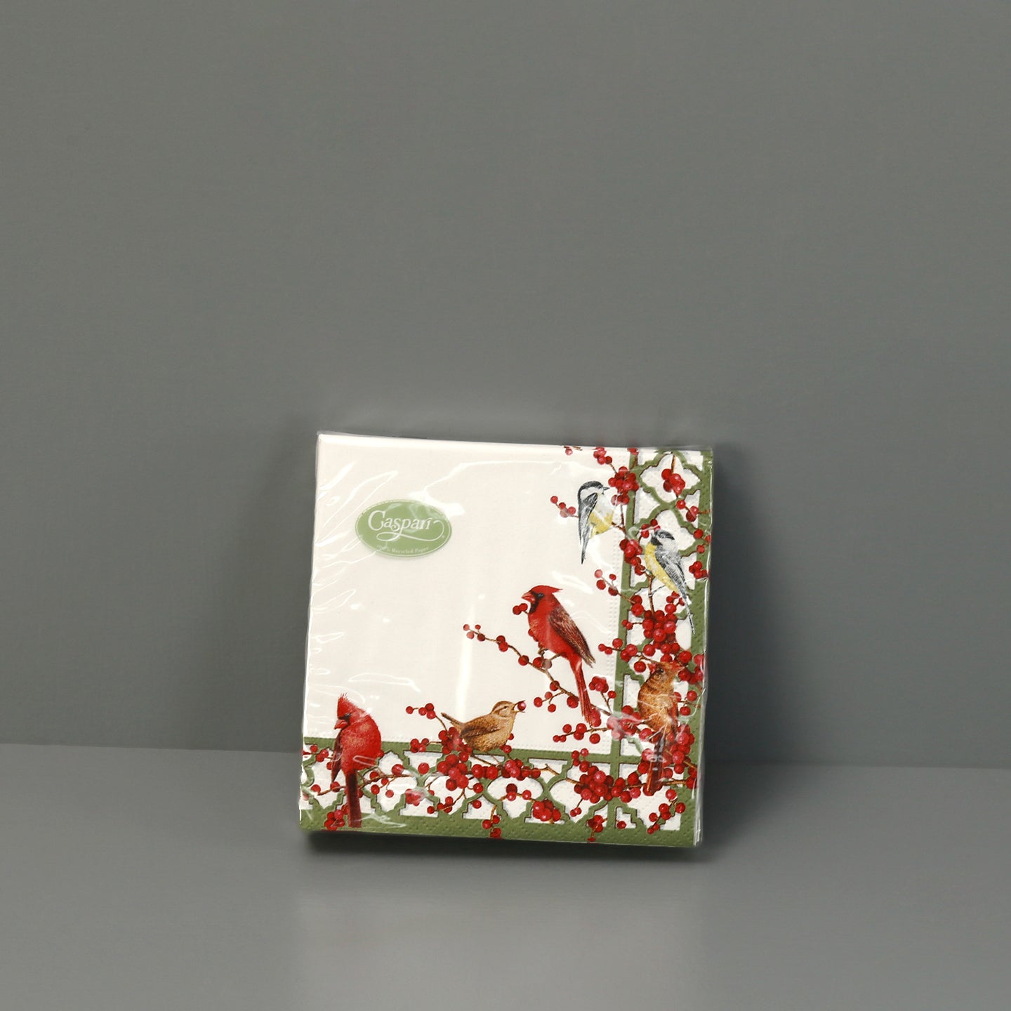 Caspari Paper Cocktail Napkins / Winter Birds and Berries